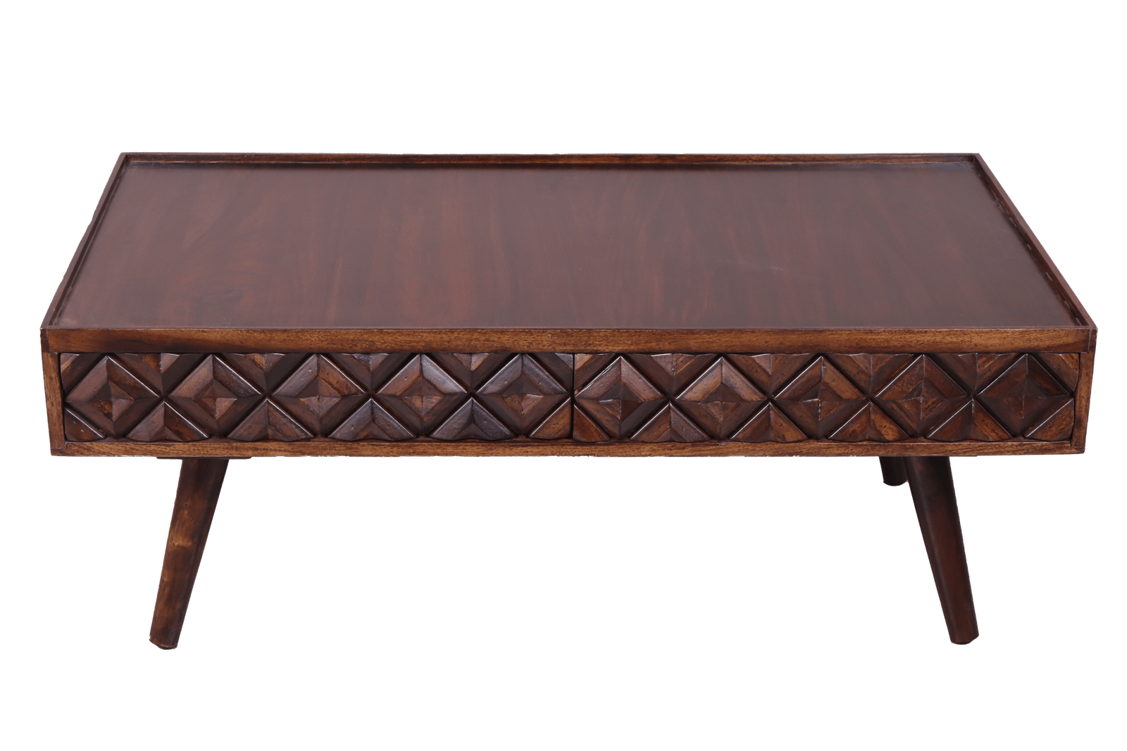 Add a touch of elegance and craftsmanship to your living space with this beautifully designed wooden coffee table. Crafted from solid wood, this piece features a rich, dark walnut finish that enhances its natural grain and provides lasting durability.