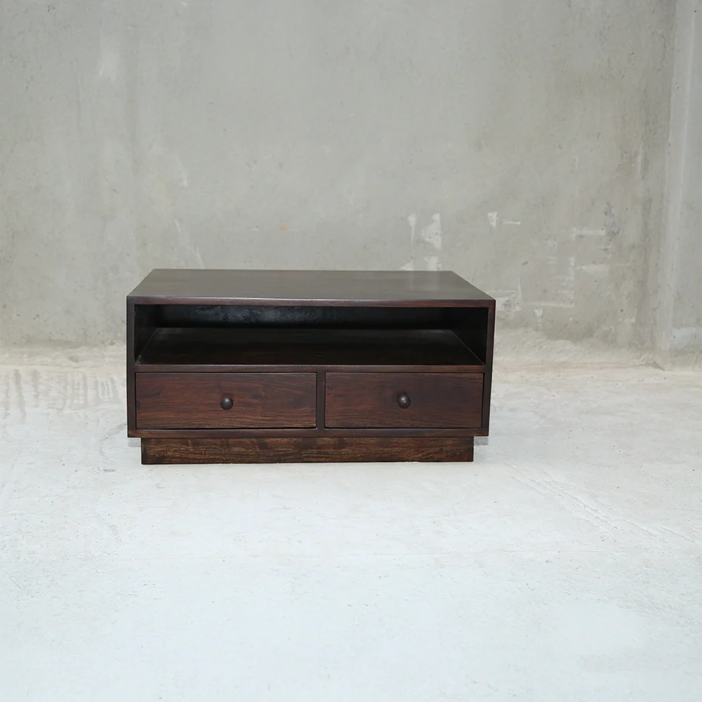 Storage Versatility: It features an open shelf for easy-access items such as books, remotes, or decor, and two spacious drawers with smooth wooden knobs for enclosed storage. Ideal for organizing daily clutter and keeping the living room tidy.