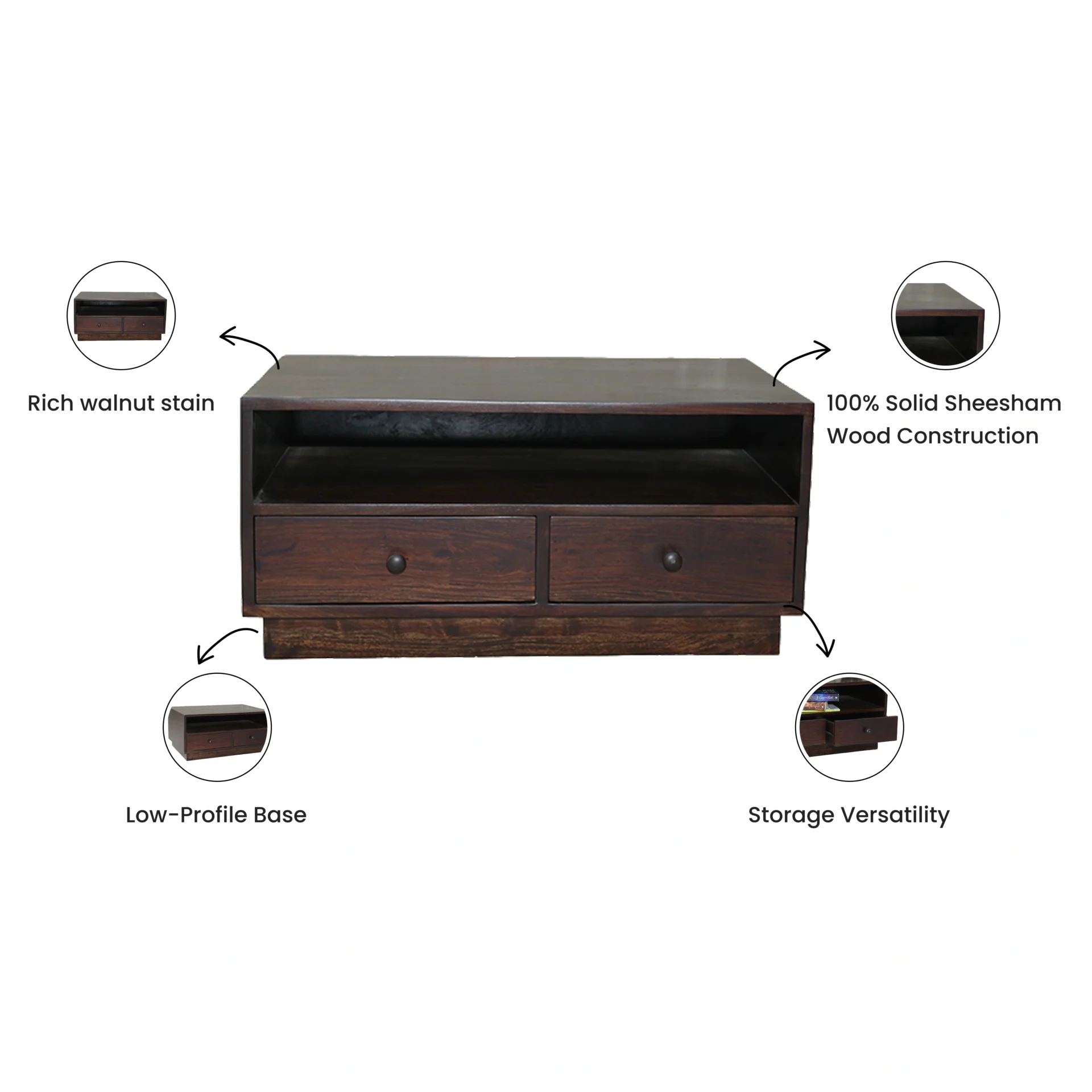 The Atlanta coffee table is a sleek and functional centerpiece that seamlessly blends modern aesthetics with practical storage. Crafted from high-quality solid Sheesham wood, this coffee table boasts a durable structure that ensures long-lasting performance while retaining its natural grain and warmth.
