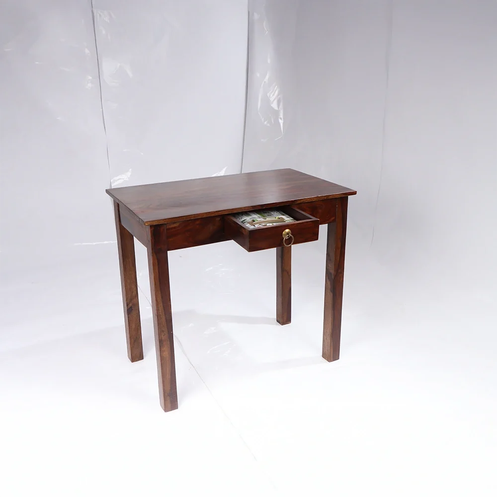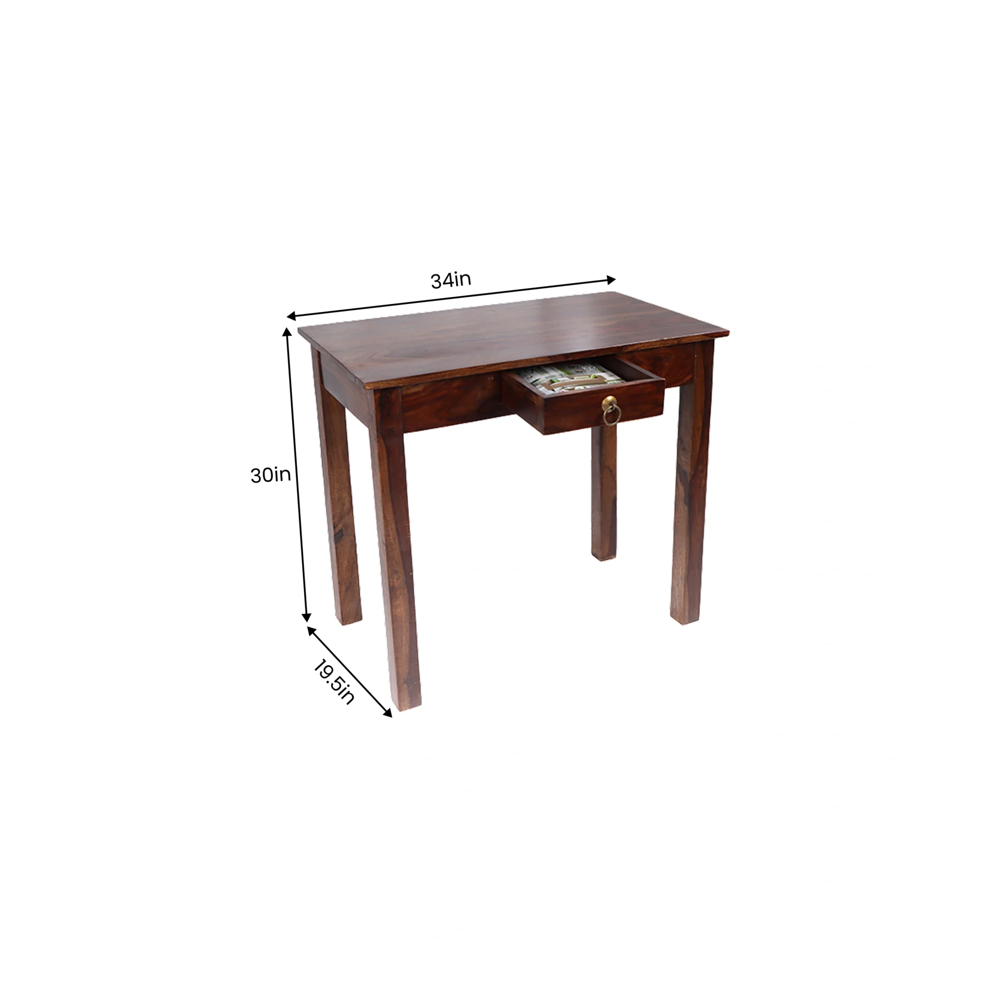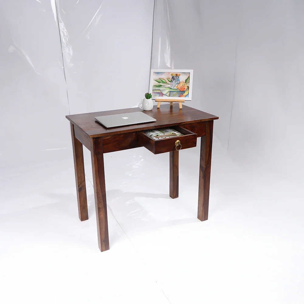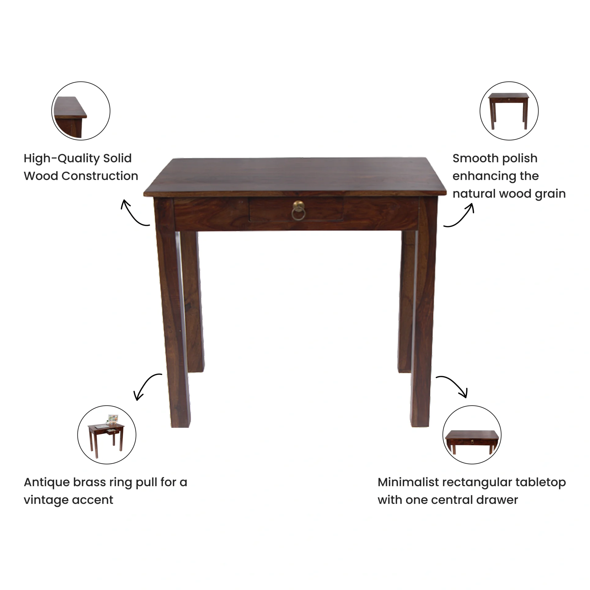 The Austin 3ft Study Table is a perfect blend of simplicity, elegance, and practicality. Crafted from premium solid Sheesham wood, it offers exceptional durability while showcasing the natural beauty of wood grain. The compact 3-foot design makes it ideal for small spaces without compromising on workspace. Featuring a single central drawer with a classic brass ring pull, it provides handy storage for stationery, notebooks, or small essentials, ensuring a clutter-free work surface.