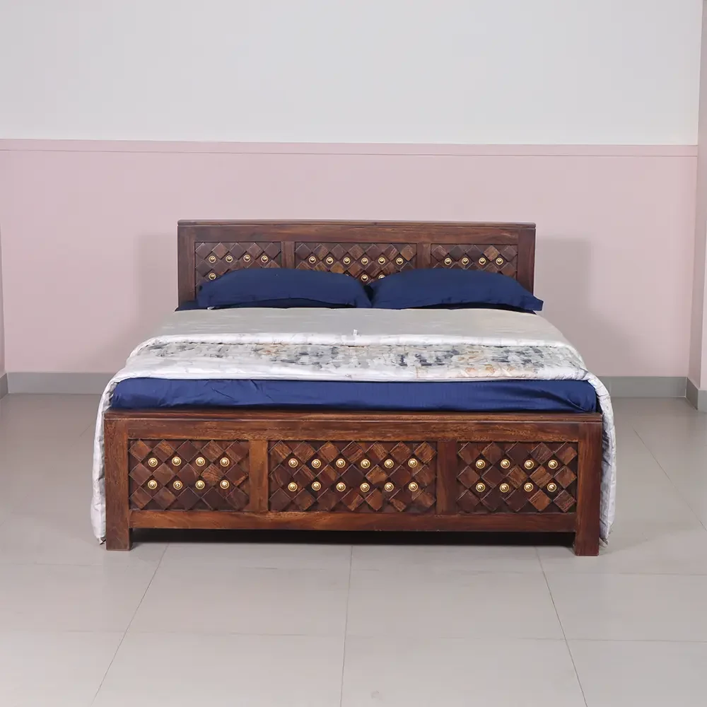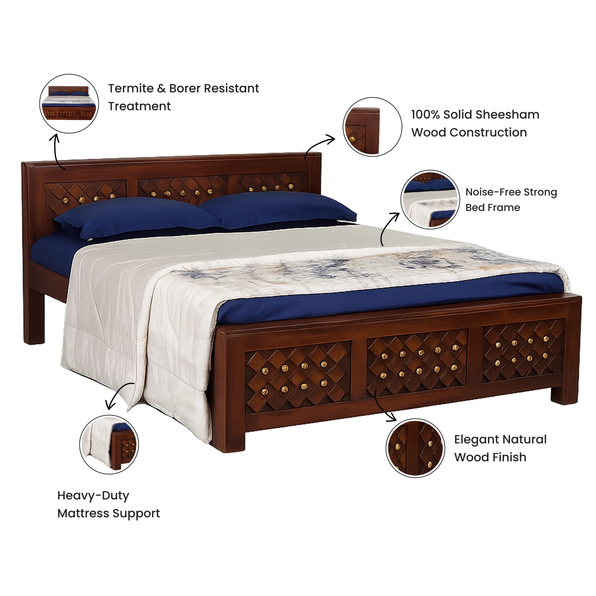 Beas Barfi Cot: Royal King Size Design in Sheesham Wood