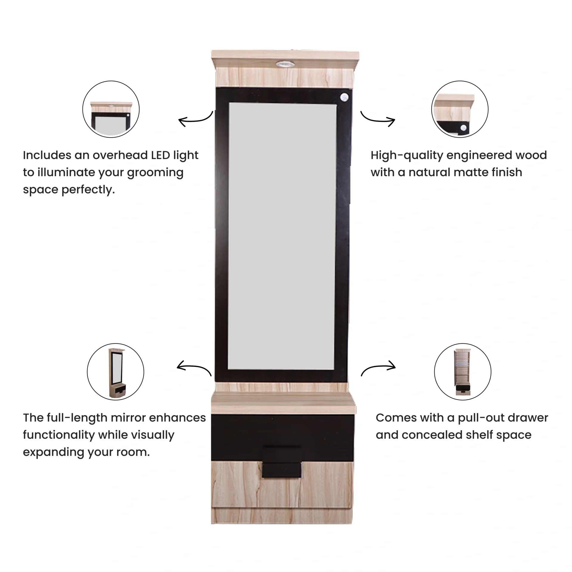 Spacious Mirror: The full-length mirror enhances functionality while visually expanding your room.