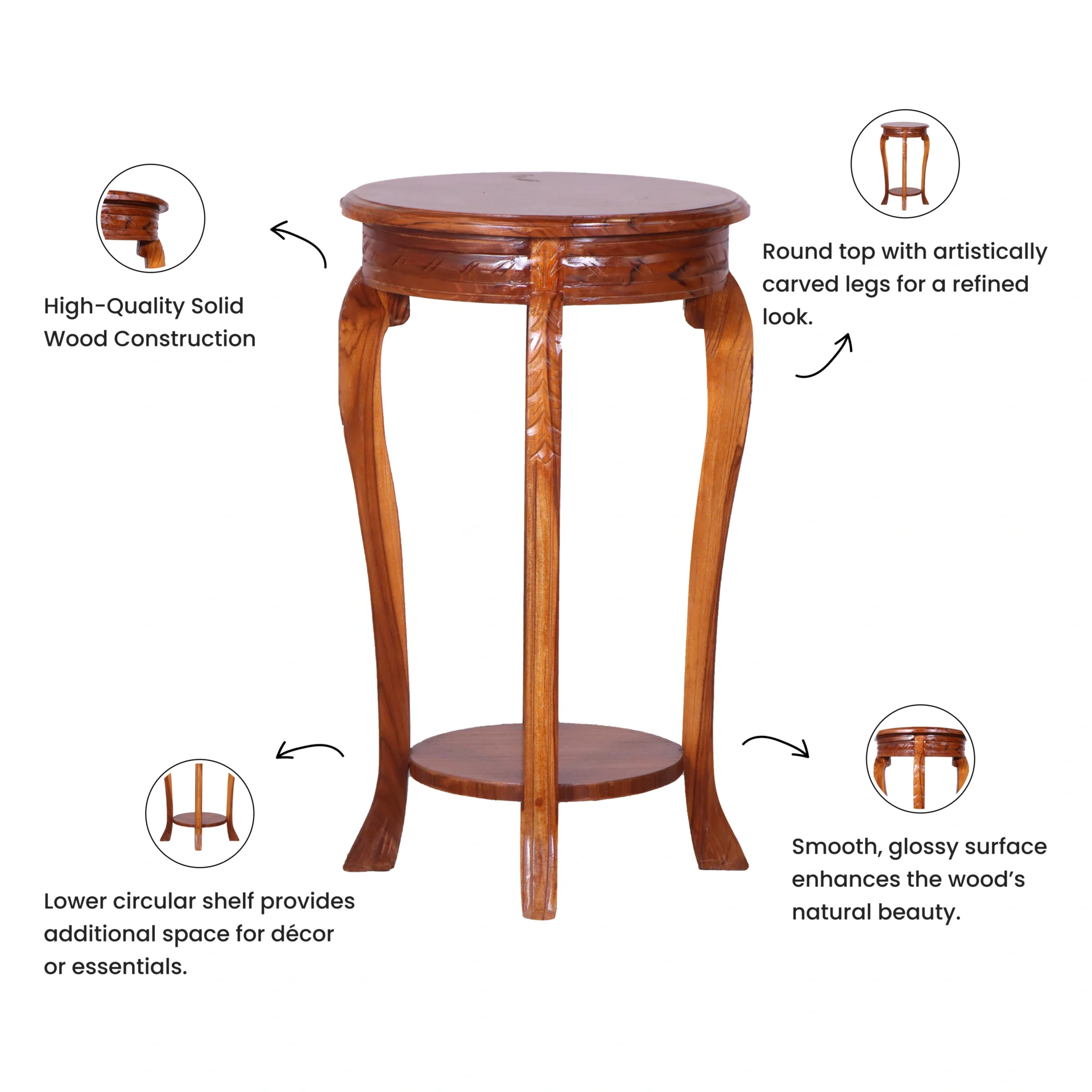 Elegant Design – Round top with artistically carved legs for a refined look.