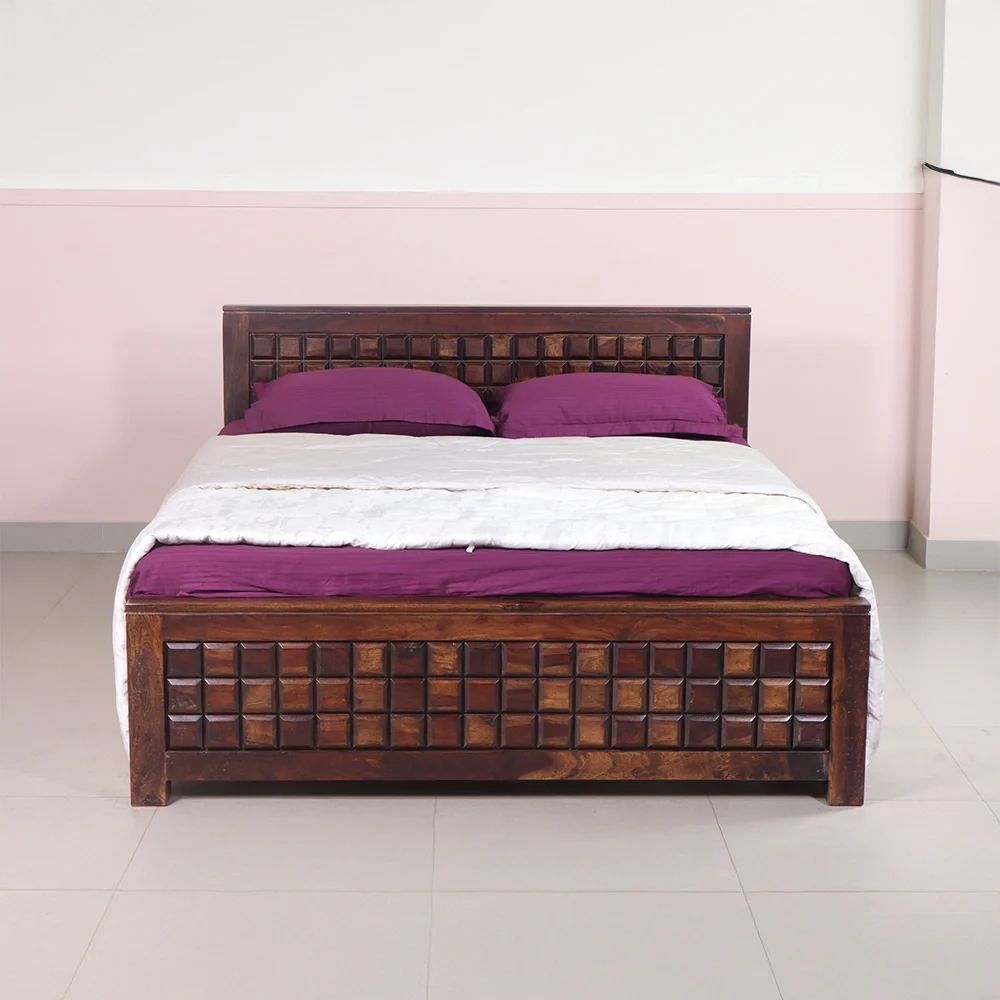 Indulge in luxurious design with the Cadbury Cot, a King size bed crafted from rich Sheesham wood and inspired by the unmistakable charm of Cadbury chocolate. Featuring distinctive, chocolate-bar-like patterns on the headboard and footboard, this non-storage bed blends playful design with premium craftsmanship.
