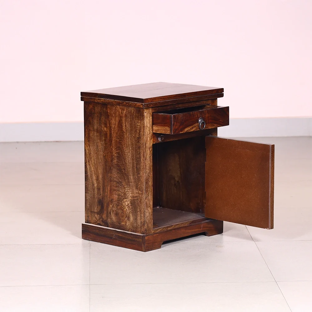 Storage: One upper drawer and a single-door cabinet for organizing nighttime essentials