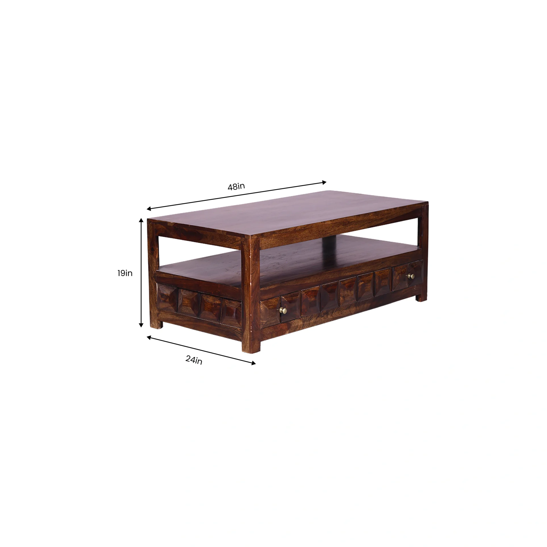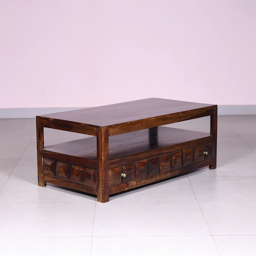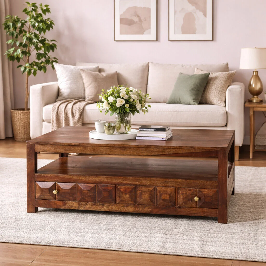 The Cadbury Coffee Table is a perfect blend of solid craftsmanship and everyday functionality. Made from Sheesham wood, this table adds warmth and elegance to your living room while offering smart storage solutions.