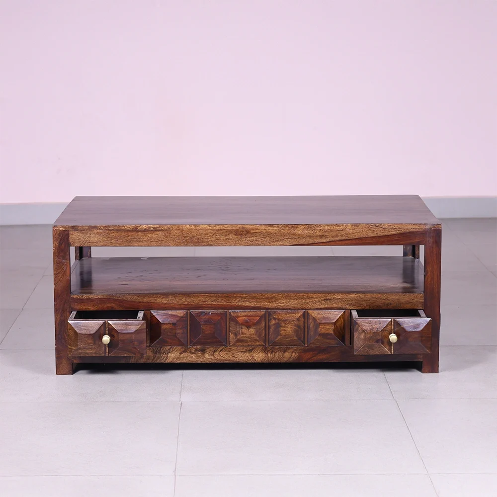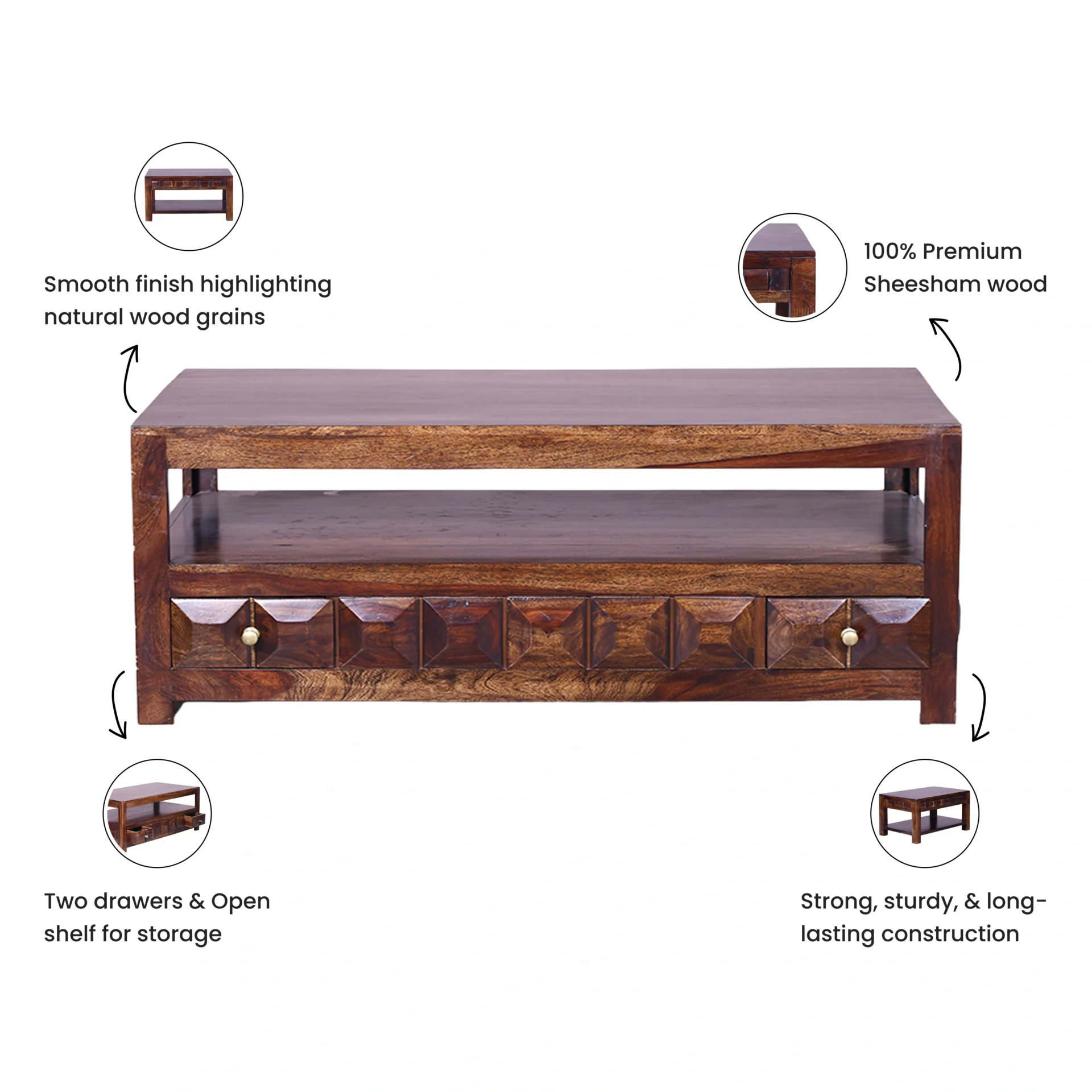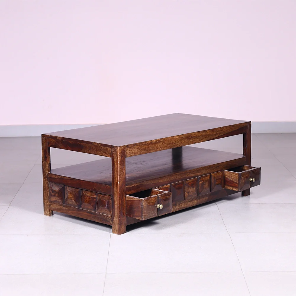 The Cadbury Coffee Table is a perfect blend of solid craftsmanship and everyday functionality. Made from Sheesham wood, this table adds warmth and elegance to your living room while offering smart storage solutions.