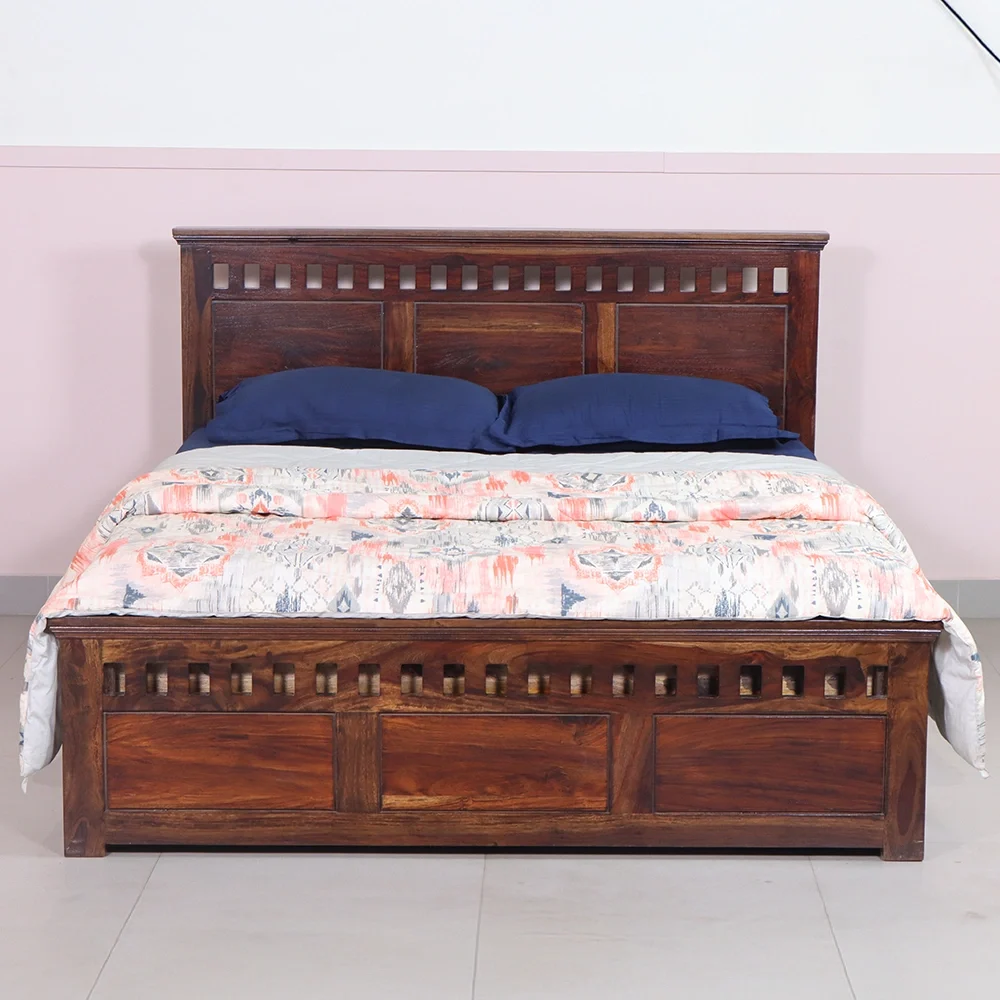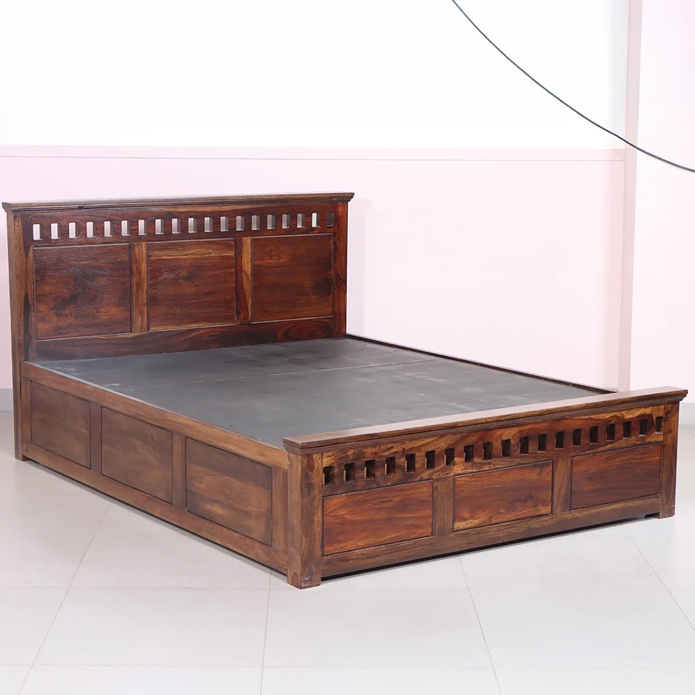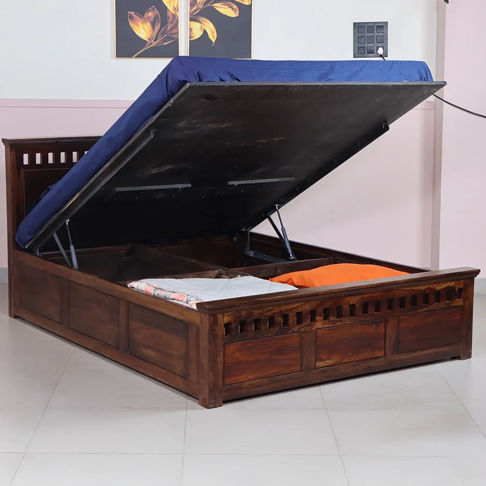 Crystal Cot: Elegant Queen Size Design in Sheesham Wood with Hydraulic Storage