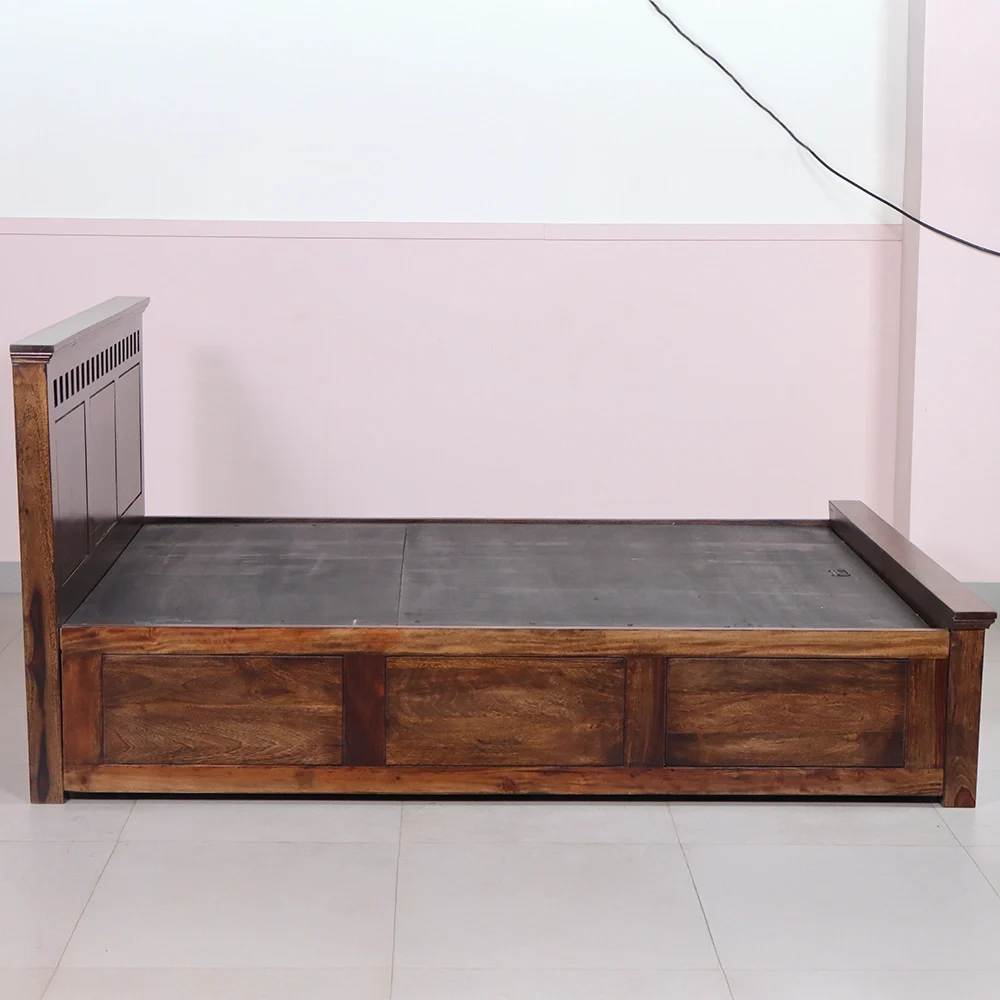| Mattress Support | The mattress is supported by an 18 mm thick plywood base, strengthened with ample wooden framing to ensure durability, stability, and reliable load-bearing performance—especially suited for hydraulic storage functionality. |