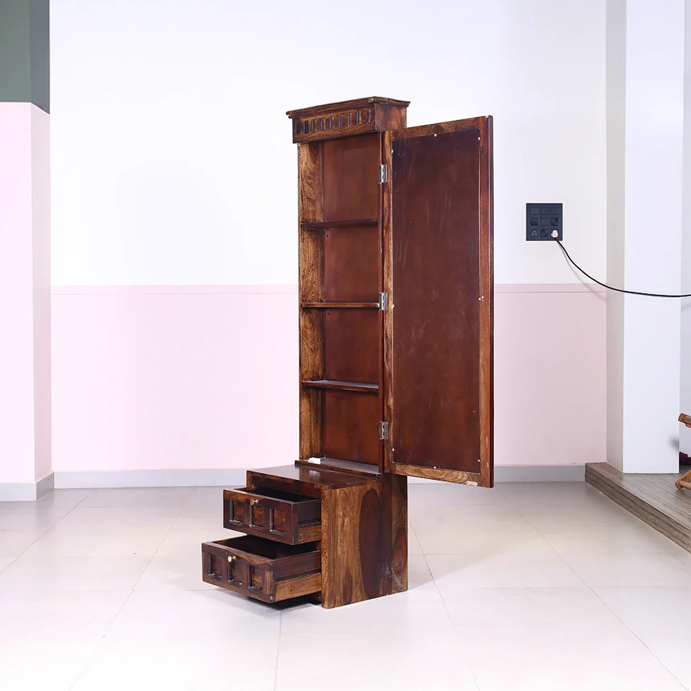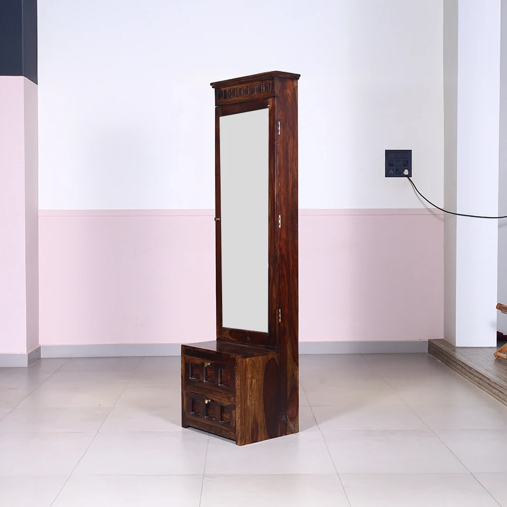 The lower section is thoughtfully designed with spacious drawers, providing convenient storage for cosmetics, accessories, personal essentials, or grooming items. Its sturdy construction ensures long-lasting durability, while the slim vertical profile makes it suitable even for compact spaces. Whether placed in a bedroom corner or as a dedicated dressing unit, this piece adds both utility and sophistication.