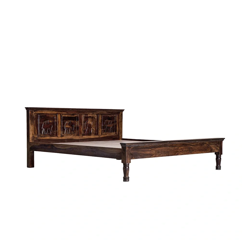 Intricate Elephant Motif: The headboard features beautifully carved elephant designs, symbolizing strength and heritage