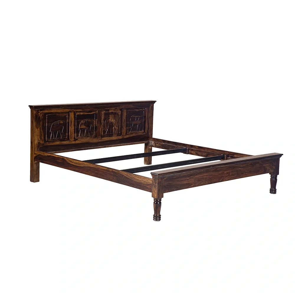 Royal Heritage Elephant Cot: Queen Size Grace in Sheesham Wood with Elephant Motif