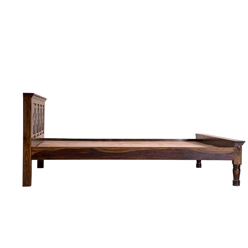 Infuse your bedroom with the charm of traditional craftsmanship and natural elegance with the Royal Heritage Cot. Expertly handcrafted from solid Sheesham wood, this Queen size bed is a celebration of cultural artistry and timeless strength.
