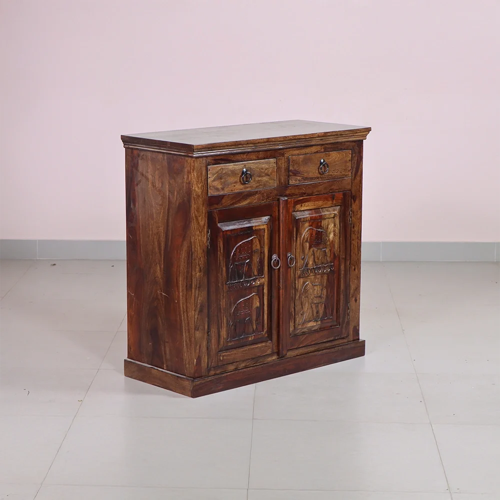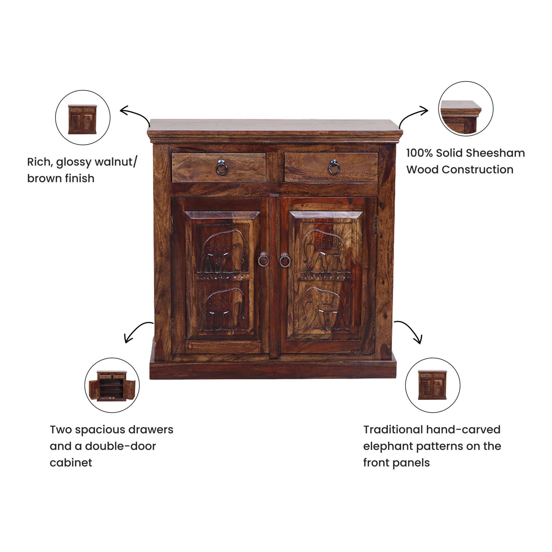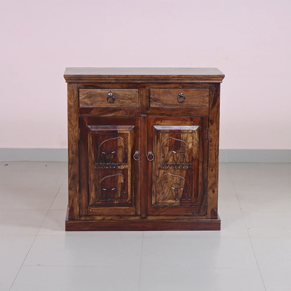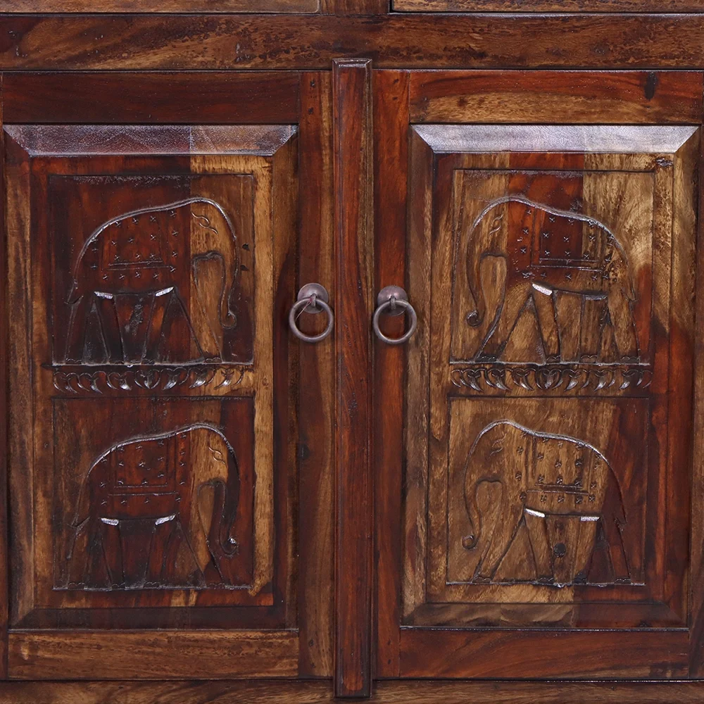 Bring charm and organization to your entryway with our handcrafted Elephant Shoe Rack. Made from premium solid wood, this shoe rack features intricate hand-carved elephant motifs on the cabinet doors, adding a touch of traditional artistry and elegance to your home décor.