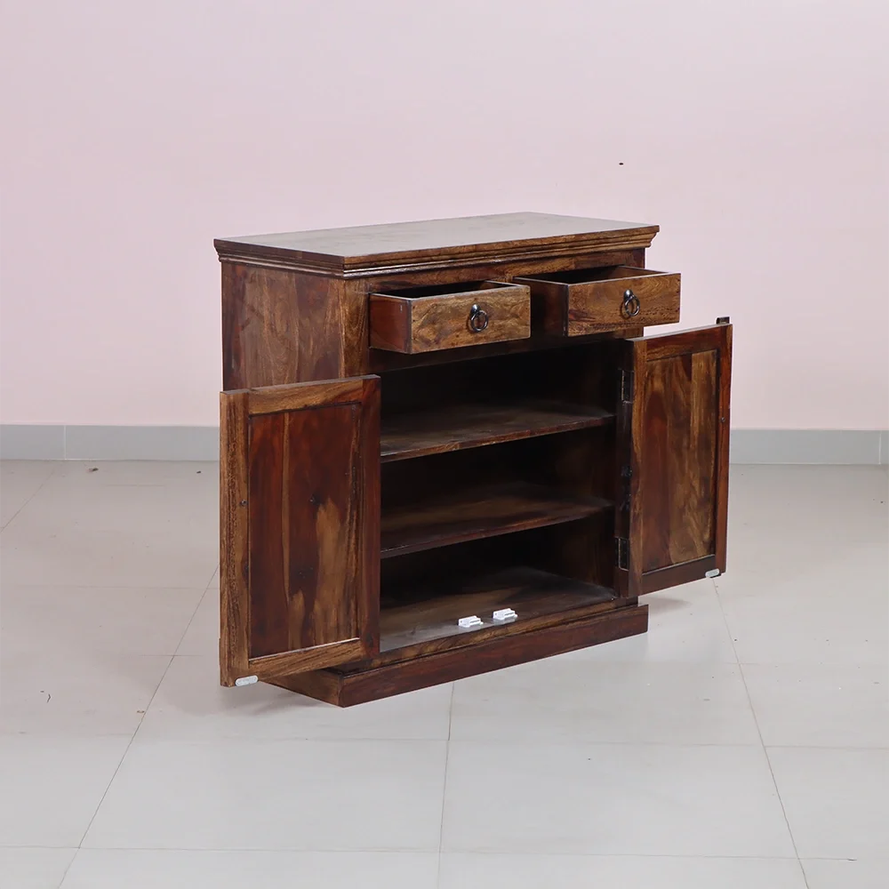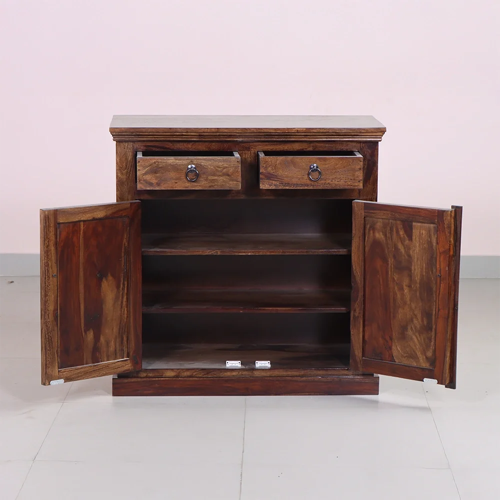 Storage: Two spacious drawers and a double-door cabinet for ample shoe storage