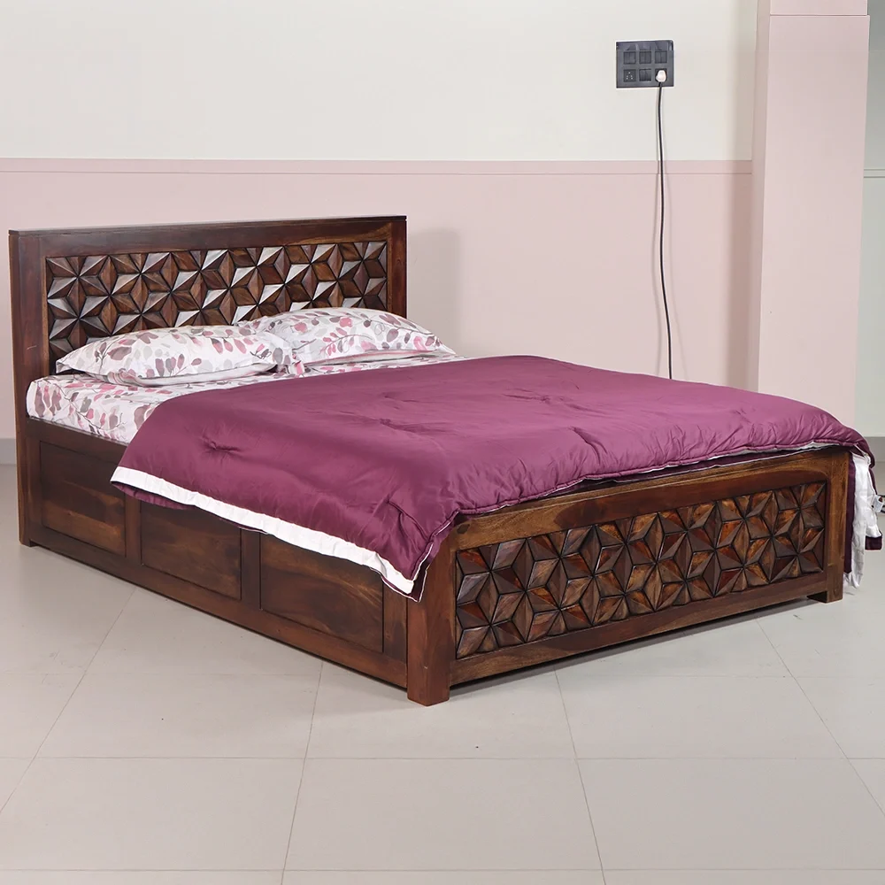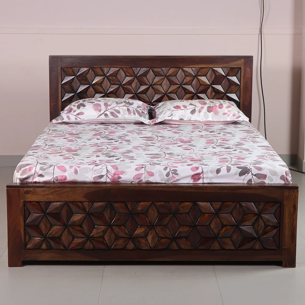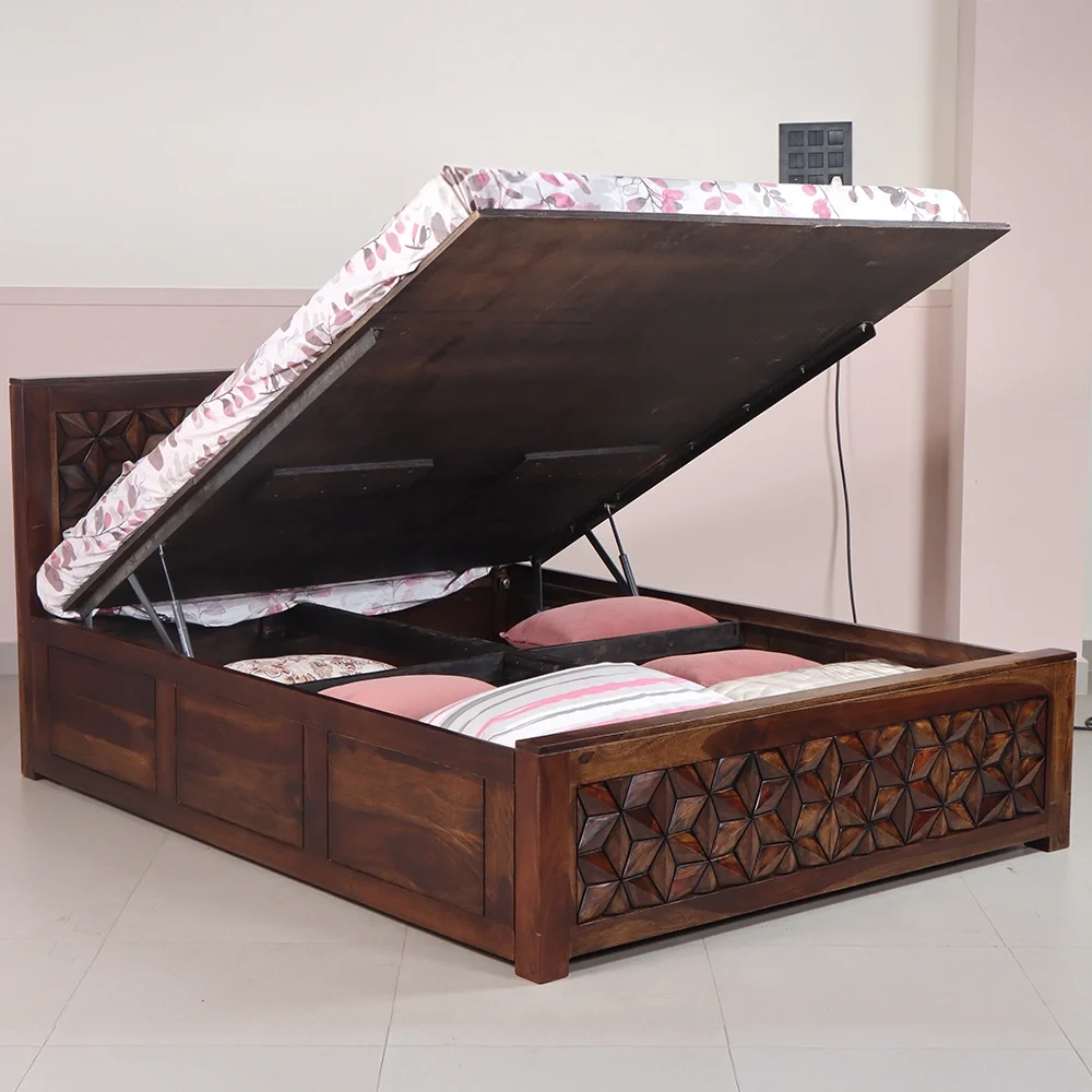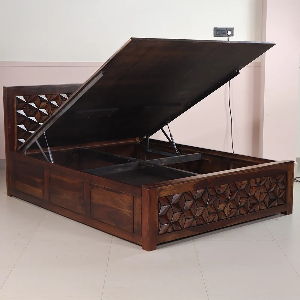 Hexa Cot: Artistic King Size Design in Sheesham Wood with Hydraulic Storage