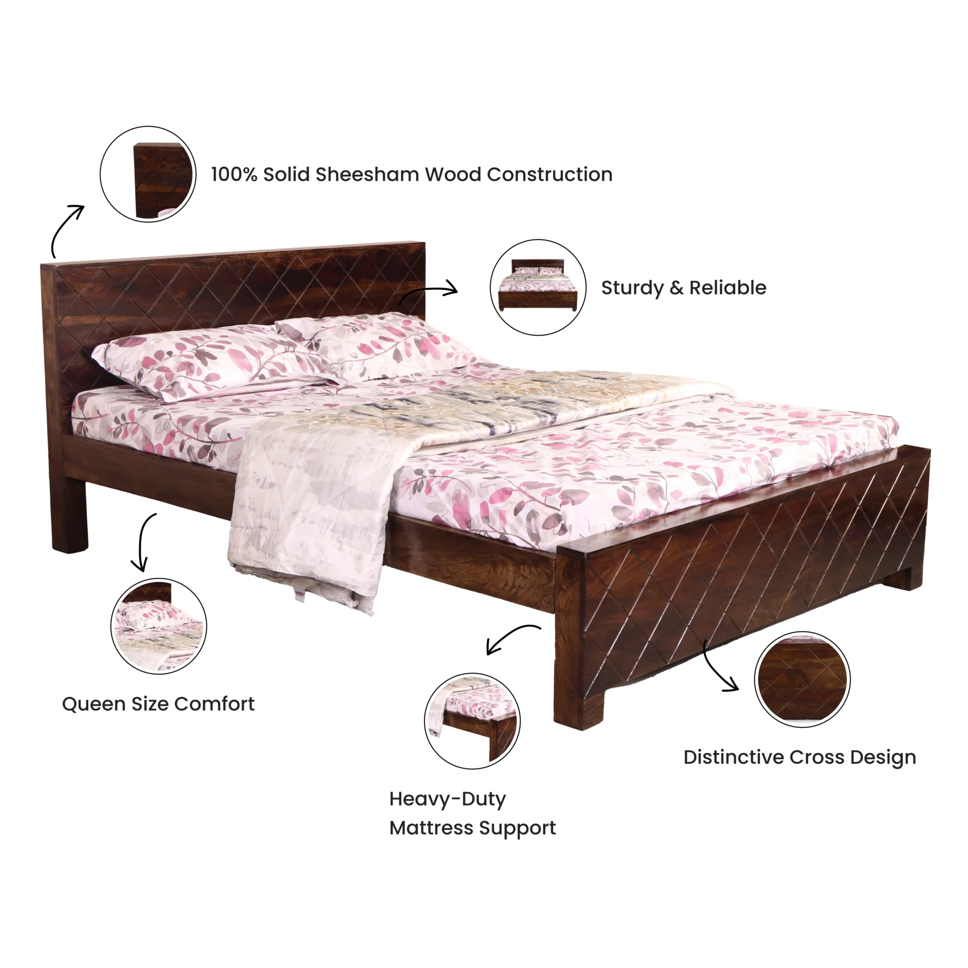 Ibis Cross Bed: Rustic Charm Meets Sheesham Wood Craftsmanship