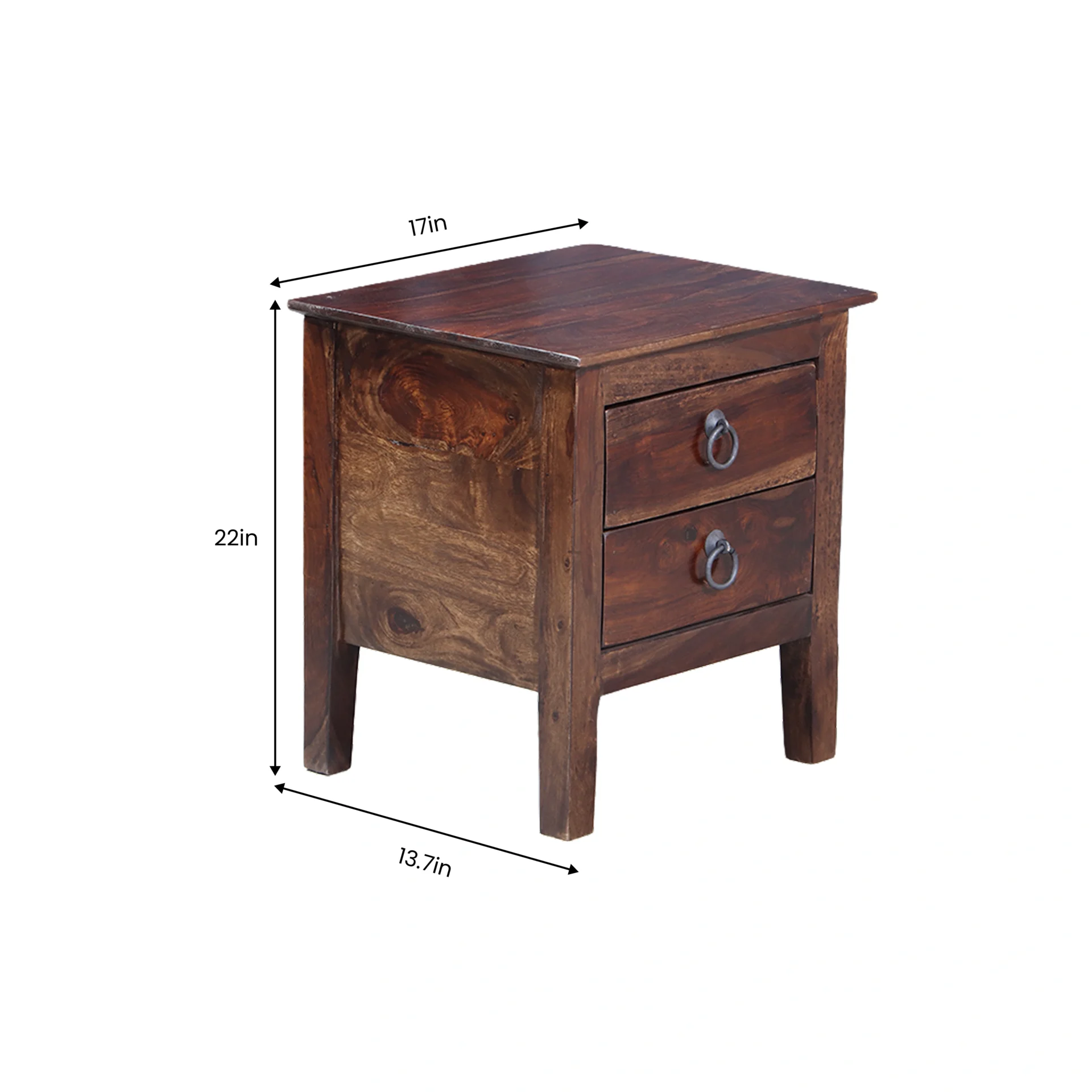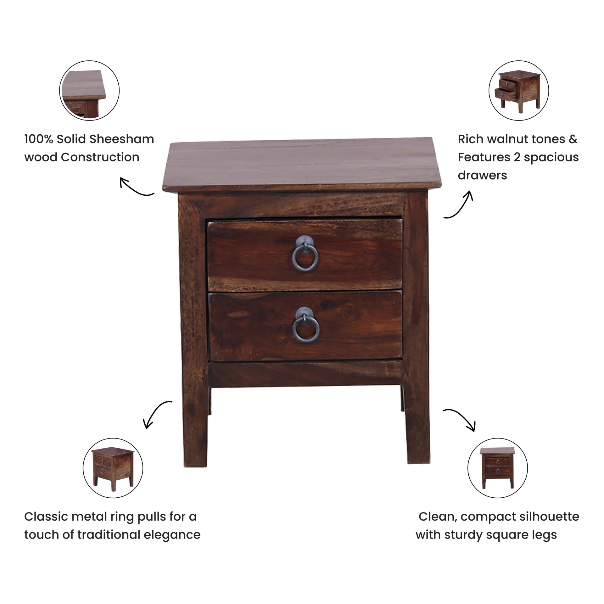 Simple, sturdy, and timeless the Illinois 2-Drawer Bedside Table is a perfect choice for lovers of minimalist wooden furniture. Crafted from high-quality Sheesham wood, this piece combines rustic charm with practical storage to elevate your bedroom setup.