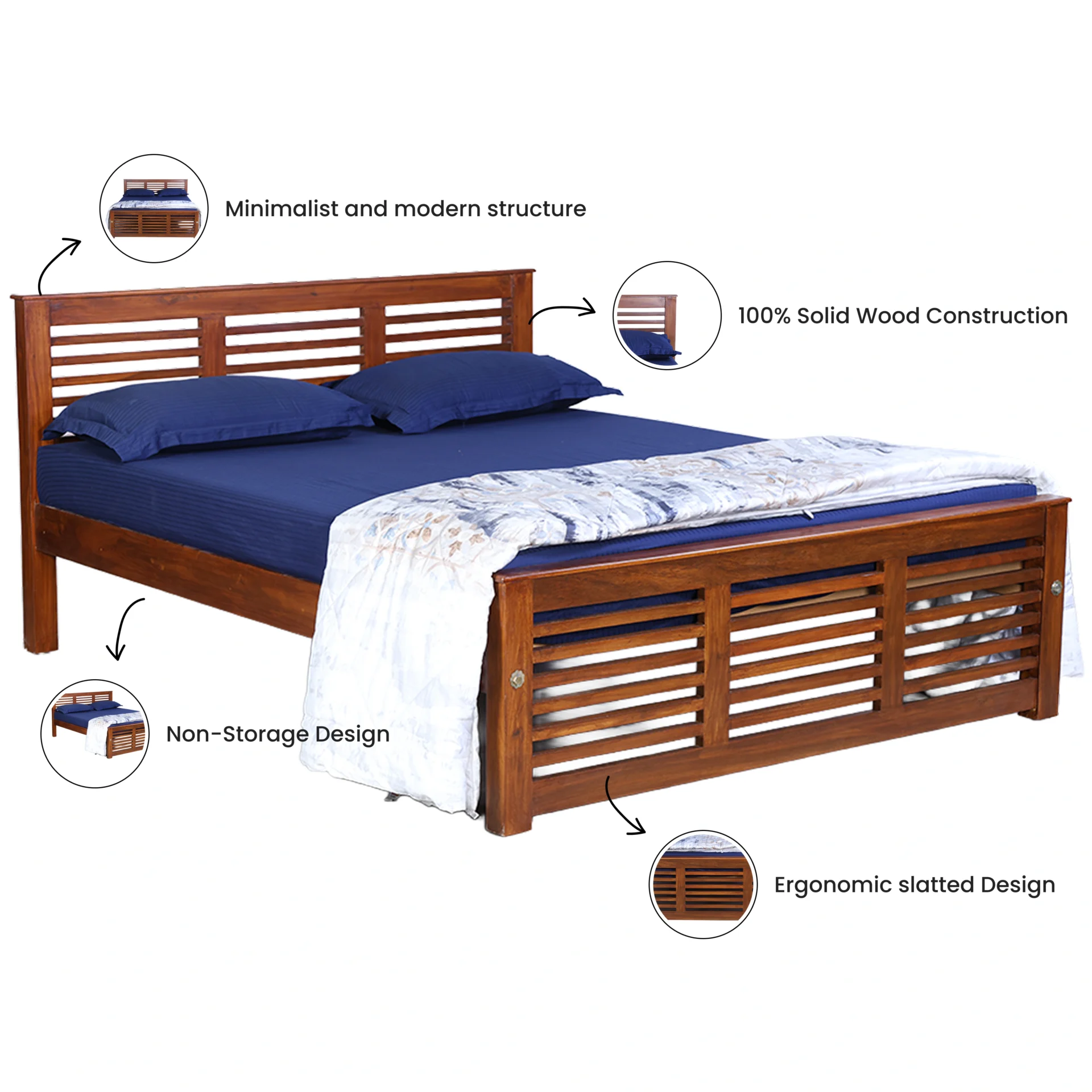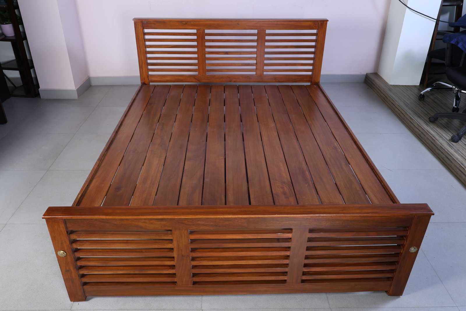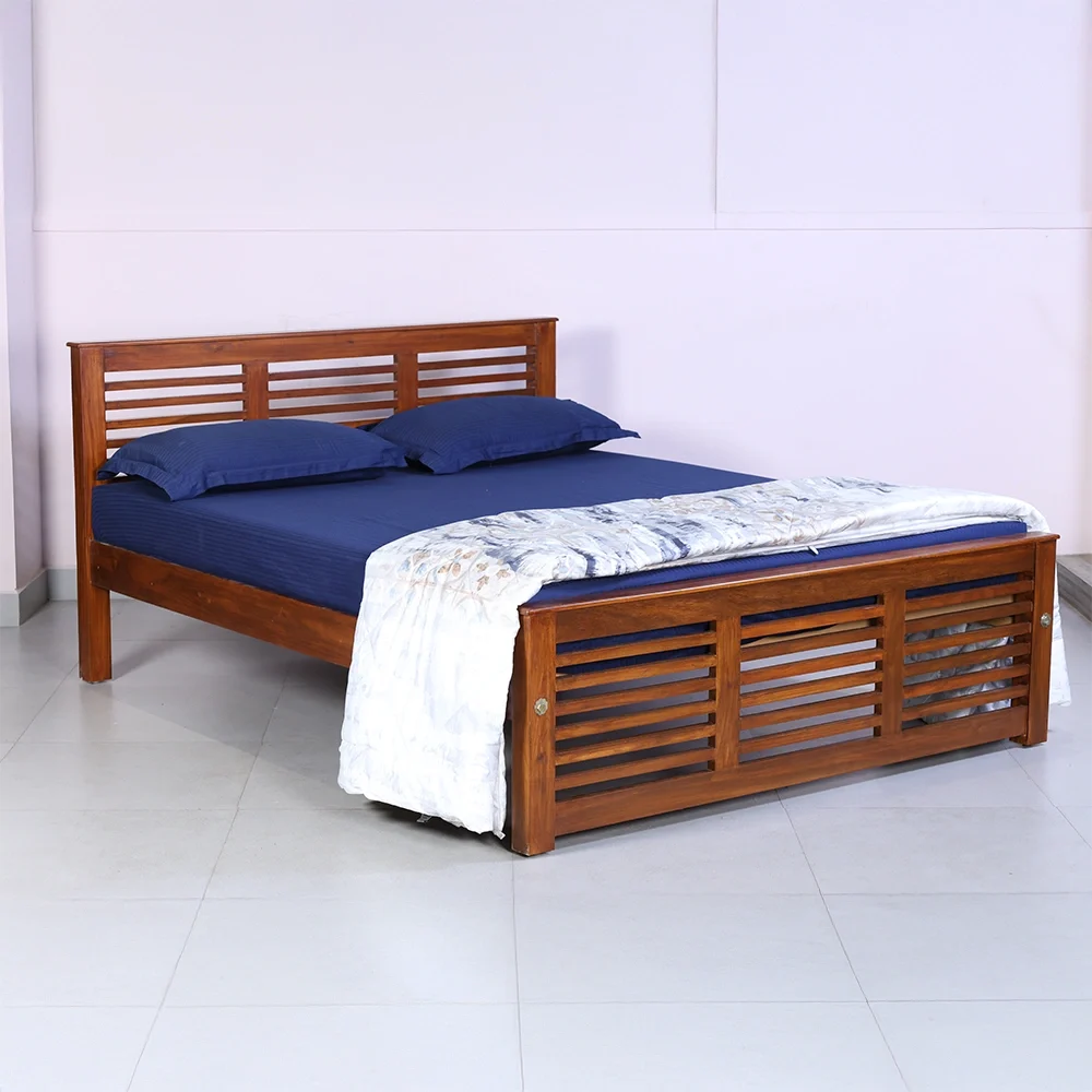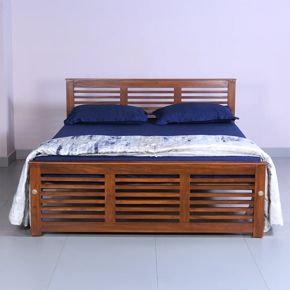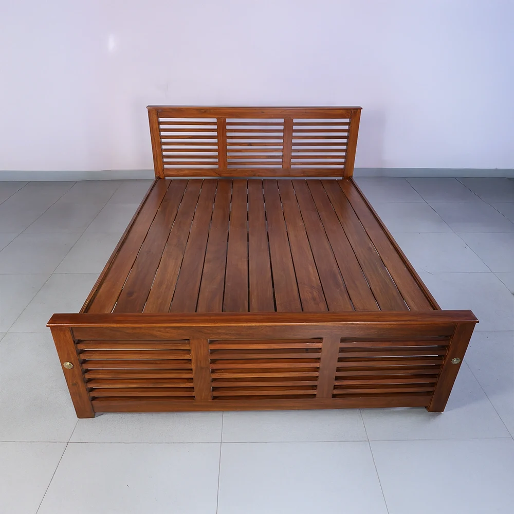 | Mattress Support | The mattress rests on thick, flat Solid wood planks that cover the entire bed frame . These planks are fixed and evenly spaced, creating a strong and stable base . It’s not a mesh or spring system it’s solid wood, which gives maximum durability and weight support. |