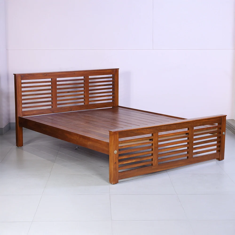 Bring home the perfect blend of strength and simplicity with the Jack-Wos Queen Bed, crafted from premium Solid wood. Its sleek horizontal slatted design on both the headboard and footboard allows for natural airflow while adding a touch of contemporary charm to your bedroom.