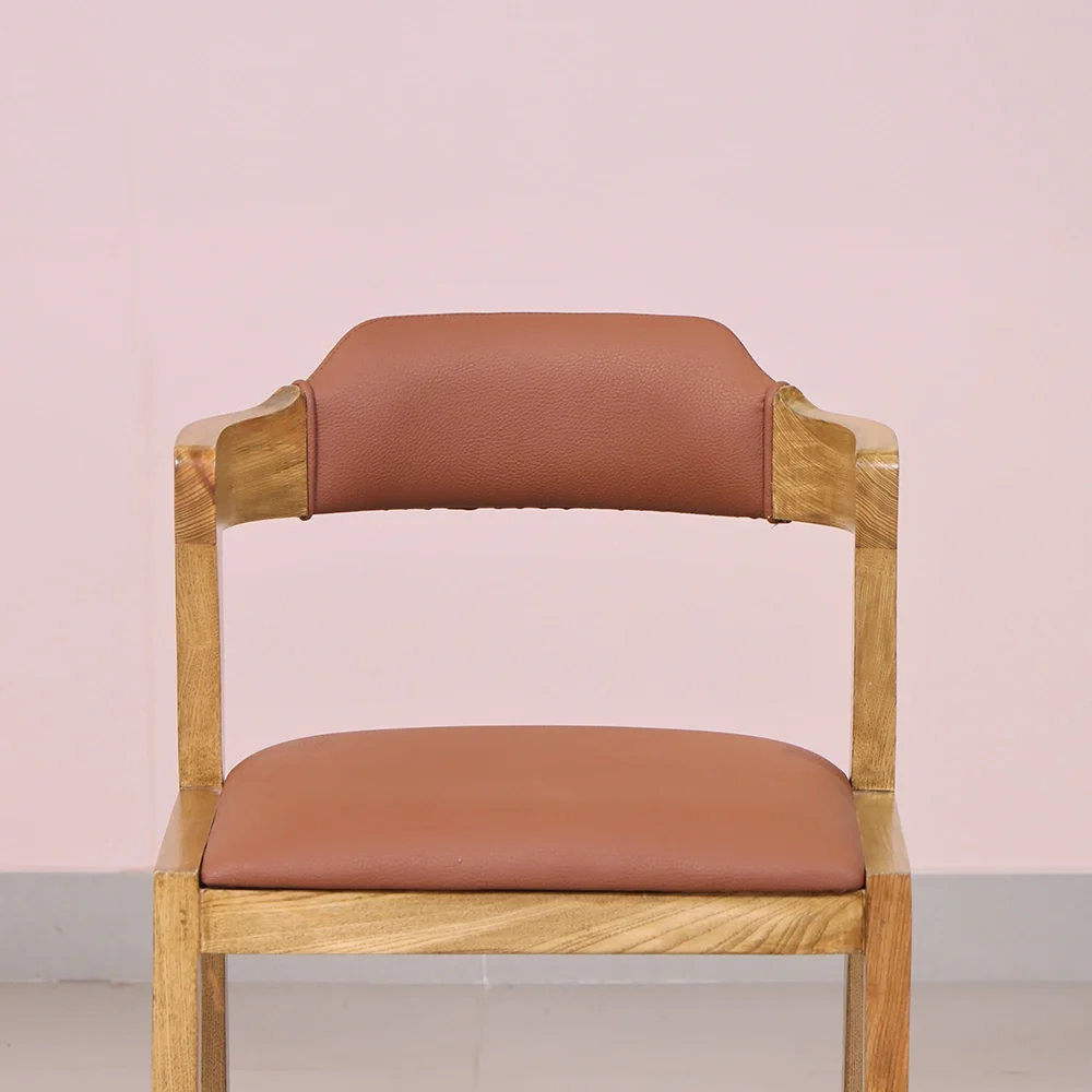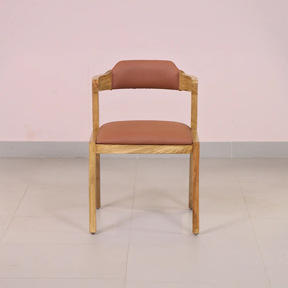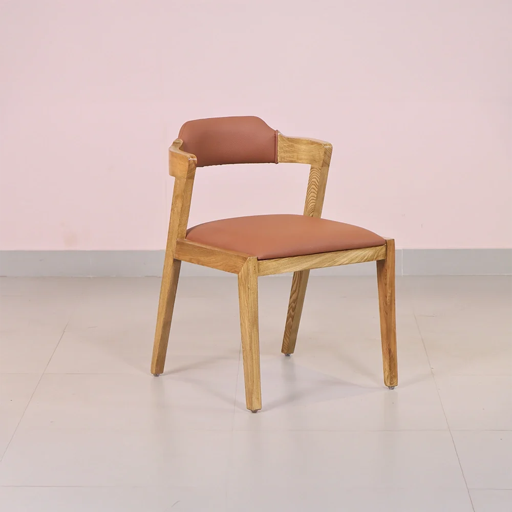 Introducing the Kim Chair, a seamless blend of modern design and natural elegance. Crafted with precision, this chair features a sturdy wooden frame with a light oak finish that showcases the beauty of natural wood grain. The ergonomically curved backrest and cushioned seat are upholstered in rich brown leatherette, offering superior comfort and refined style.
