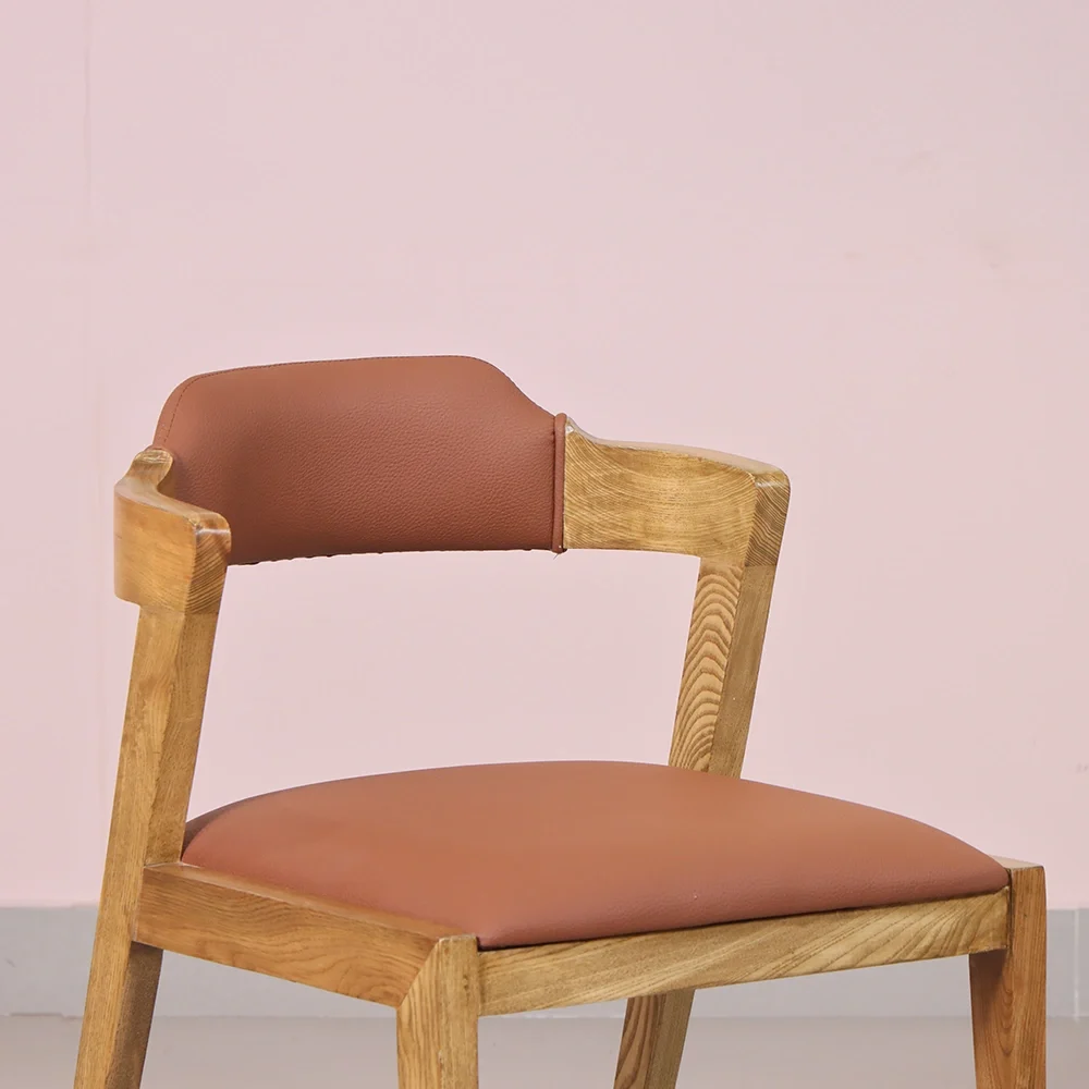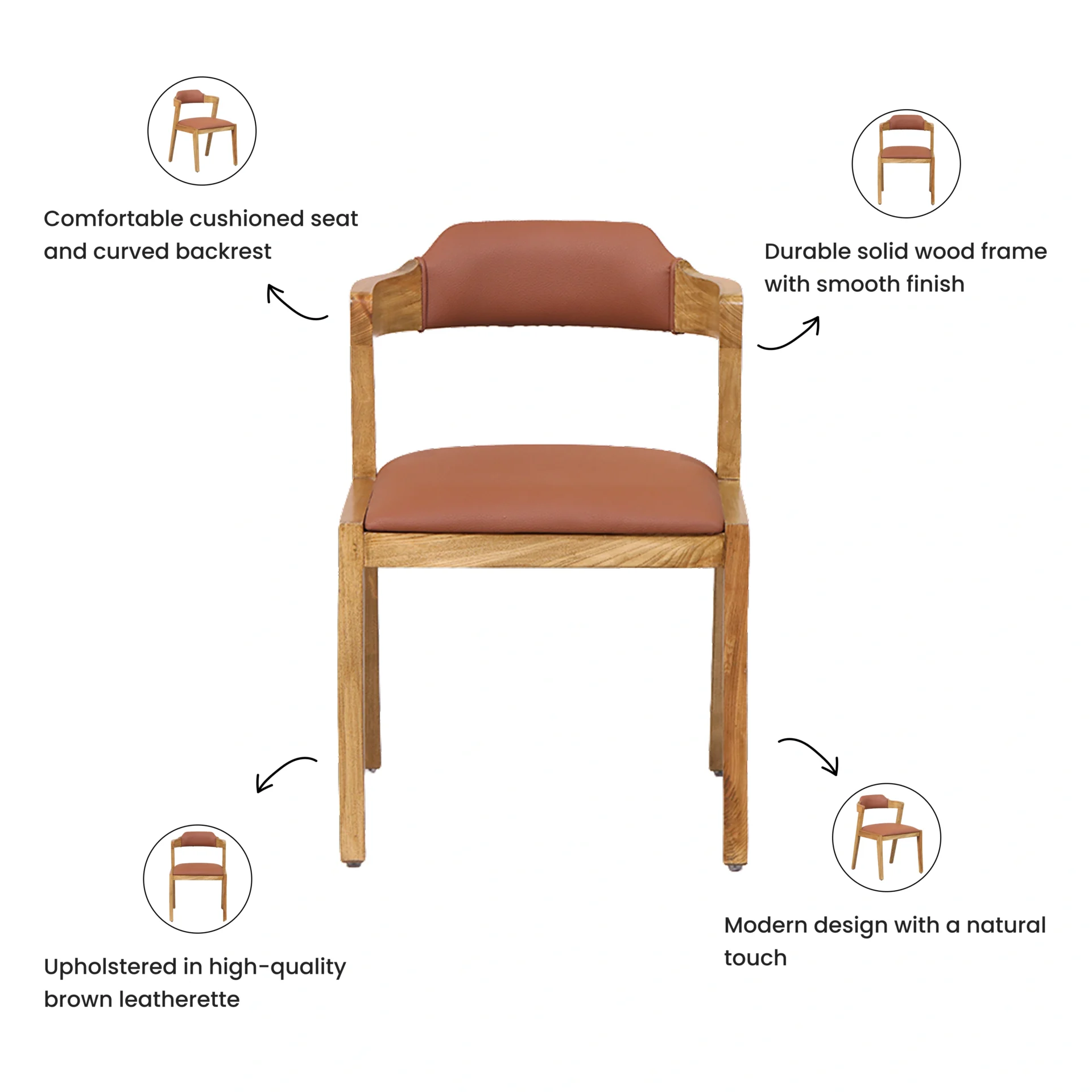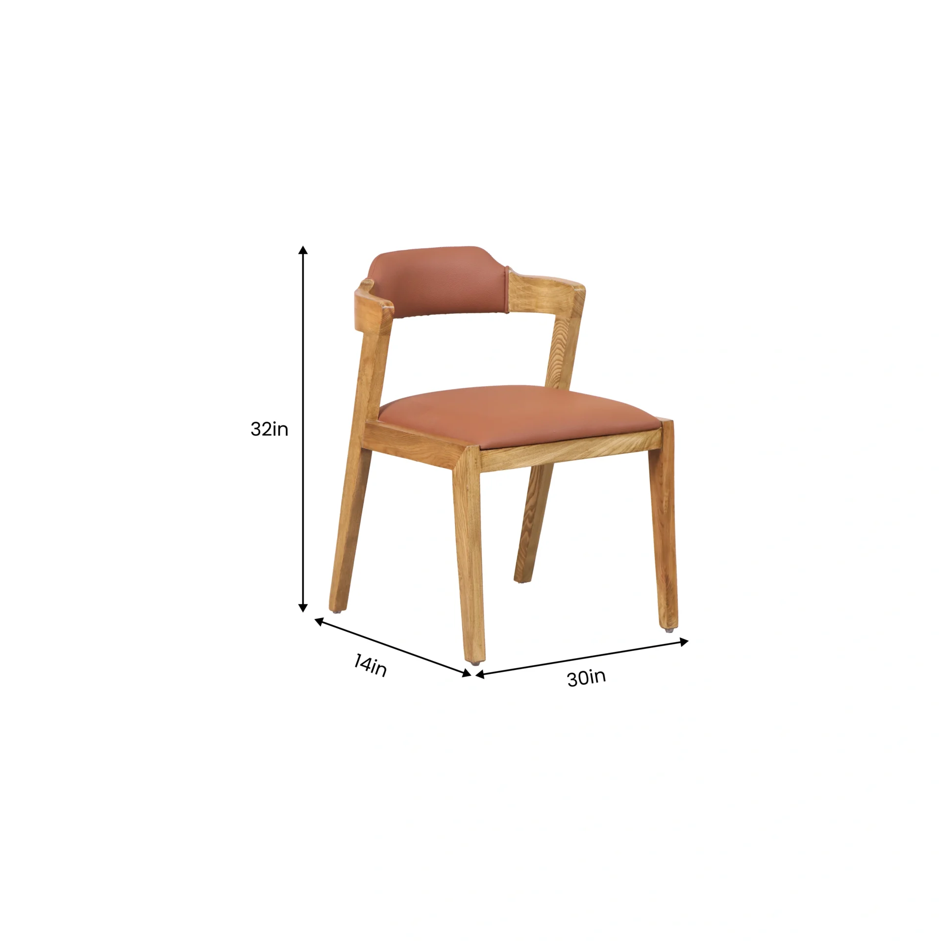 Introducing the Kim Chair, a seamless blend of modern design and natural elegance. Crafted with precision, this chair features a sturdy wooden frame with a light oak finish that showcases the beauty of natural wood grain. The ergonomically curved backrest and cushioned seat are upholstered in rich brown leatherette, offering superior comfort and refined style.
