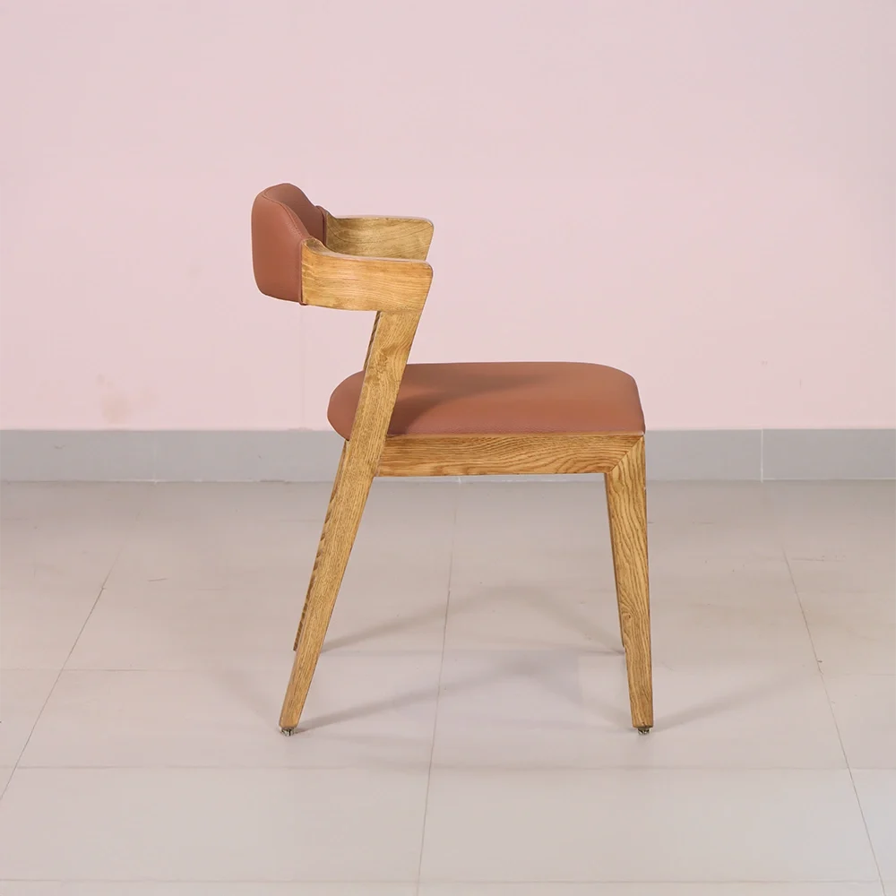 Perfect for dining rooms, study areas, or casual seating, the Kim Chair is both functional and fashionable. Its angled legs and minimalistic silhouette give it a contemporary appeal, while the warm tones make it easy to pair with a variety of interiors.