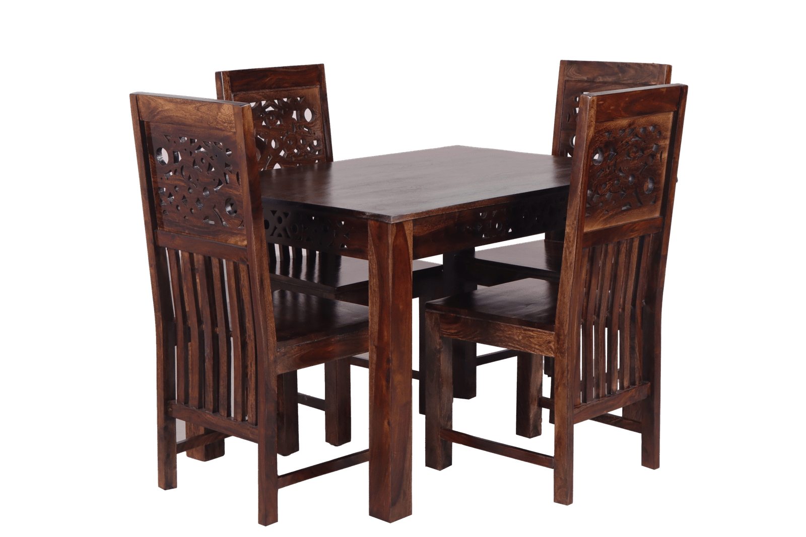 Elevate your dining room with the majestic charm of the Kingfisher CNC Dining 4 Seater, a masterpiece of traditional artistry and solid wood craftsmanship. Designed for both everyday functionality and special occasions, this dining set blends ornamental design with enduring structure, bringing timeless elegance to your home.