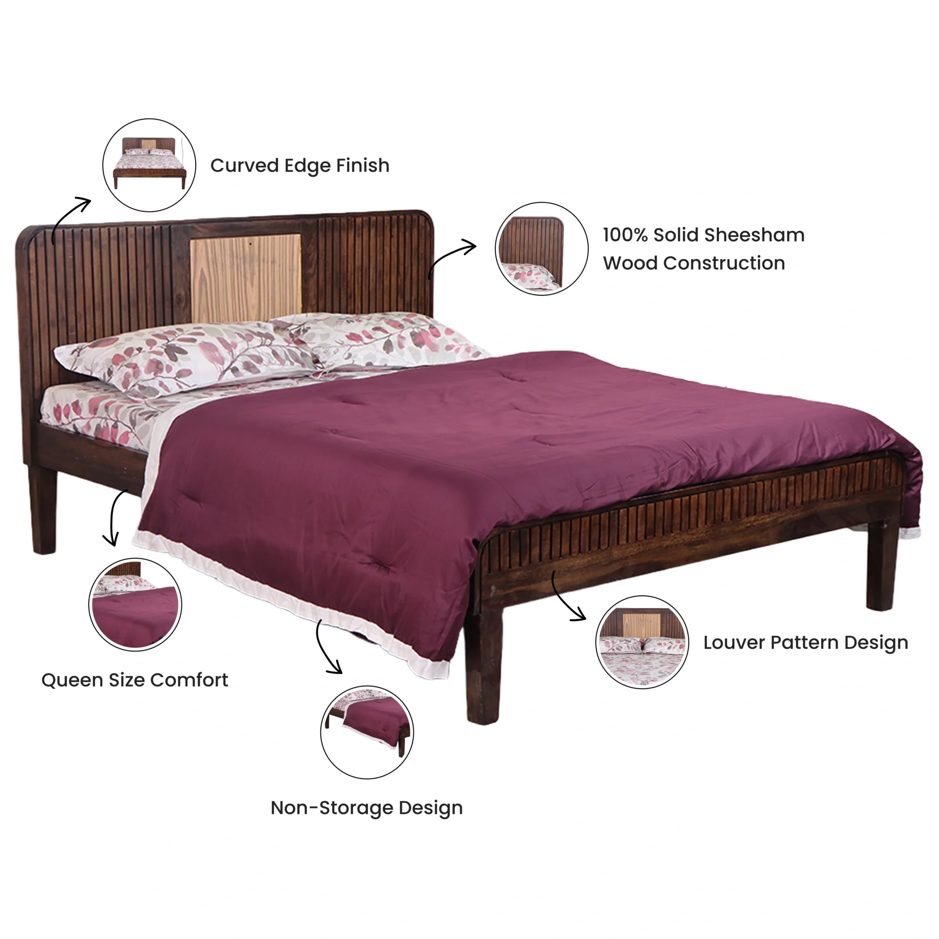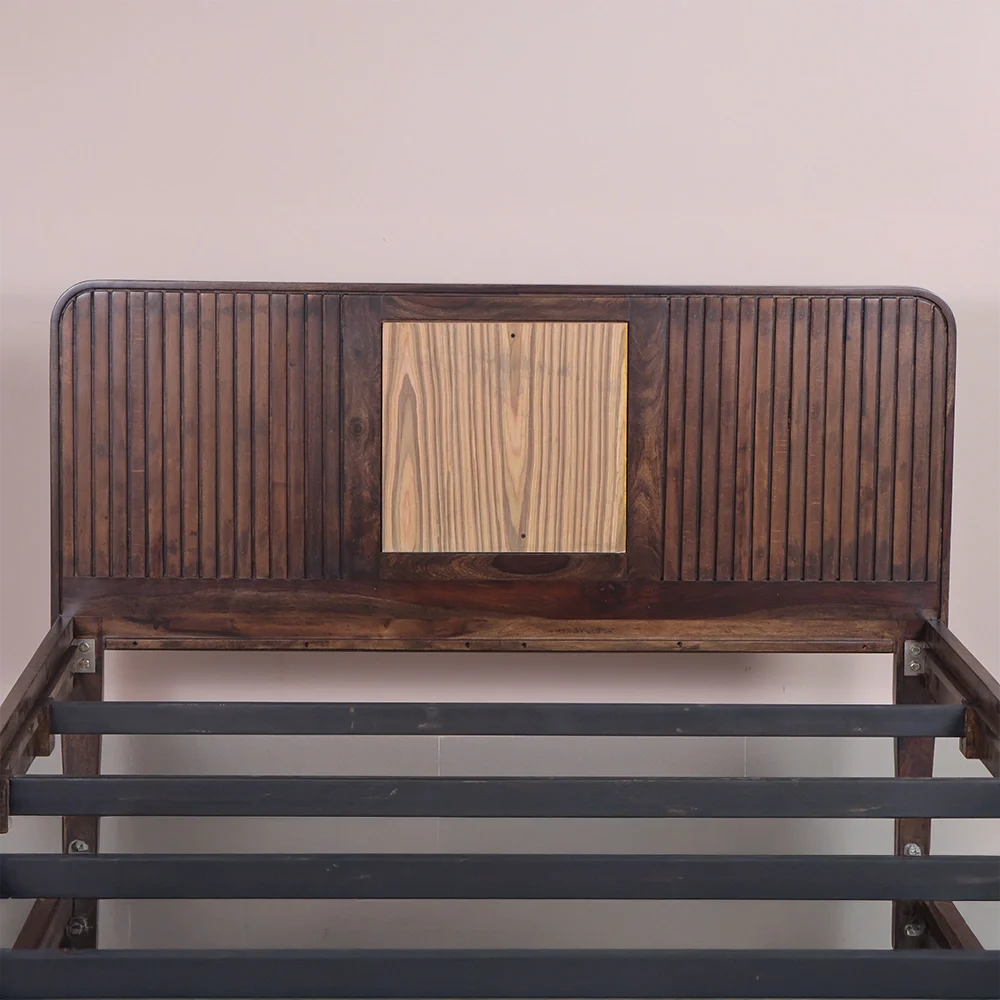 Louver Pattern Design: Slatted louver-style detailing on headboard and footboard lends a light, breathable look