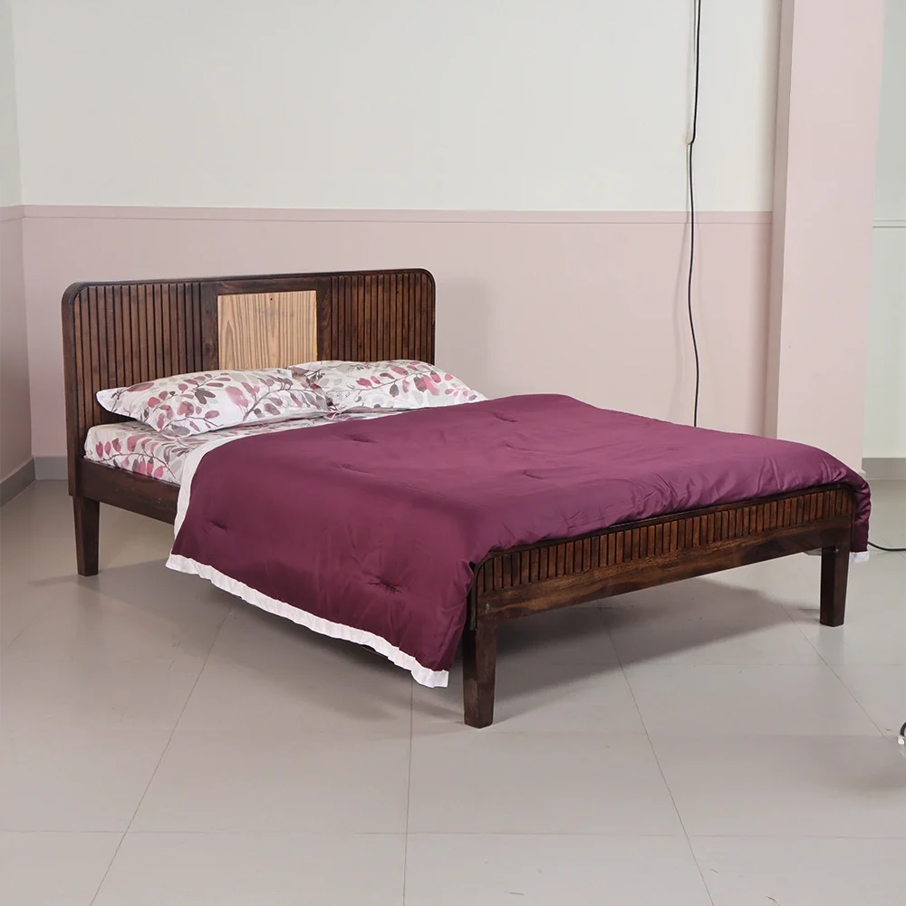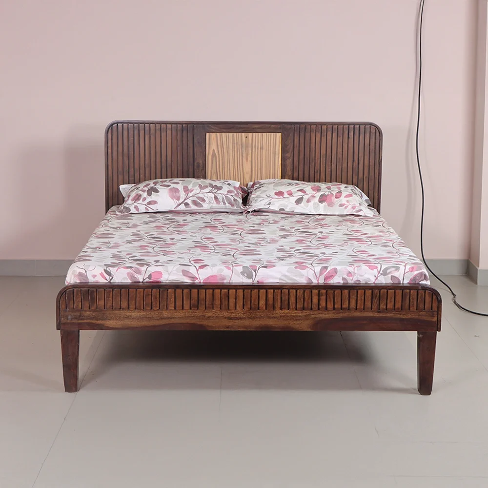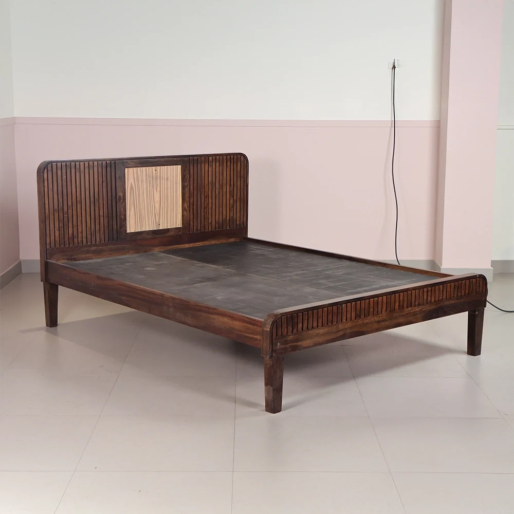 Introduce timeless charm and airy elegance to your bedroom with the Louver Cot — a Queen size bed expertly crafted from solid Sheesham wood. Featuring classic louver-style patterns on both the headboard and footboard, this bed evokes a sense of openness and design finesse, enhanced by gently curved edges that add a soft, graceful touch.