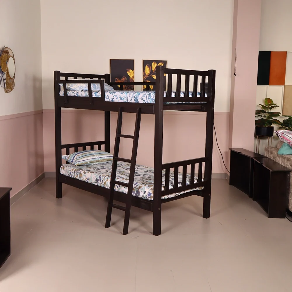 Malta Bunker Cot: Smart Dual-Level Comfort in Rich Mahogany Wood