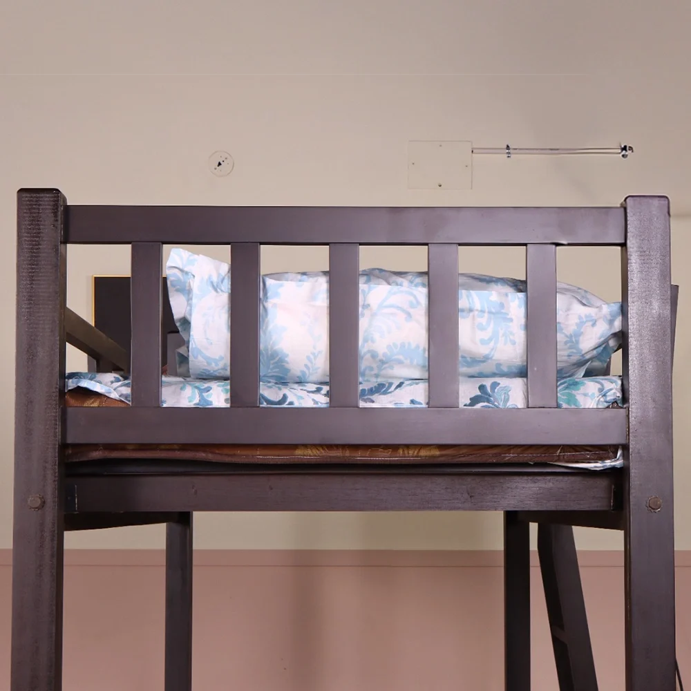 Safety Side Railings: The upper bunk features robust wooden side railings to keep children safe and secure throughout the night