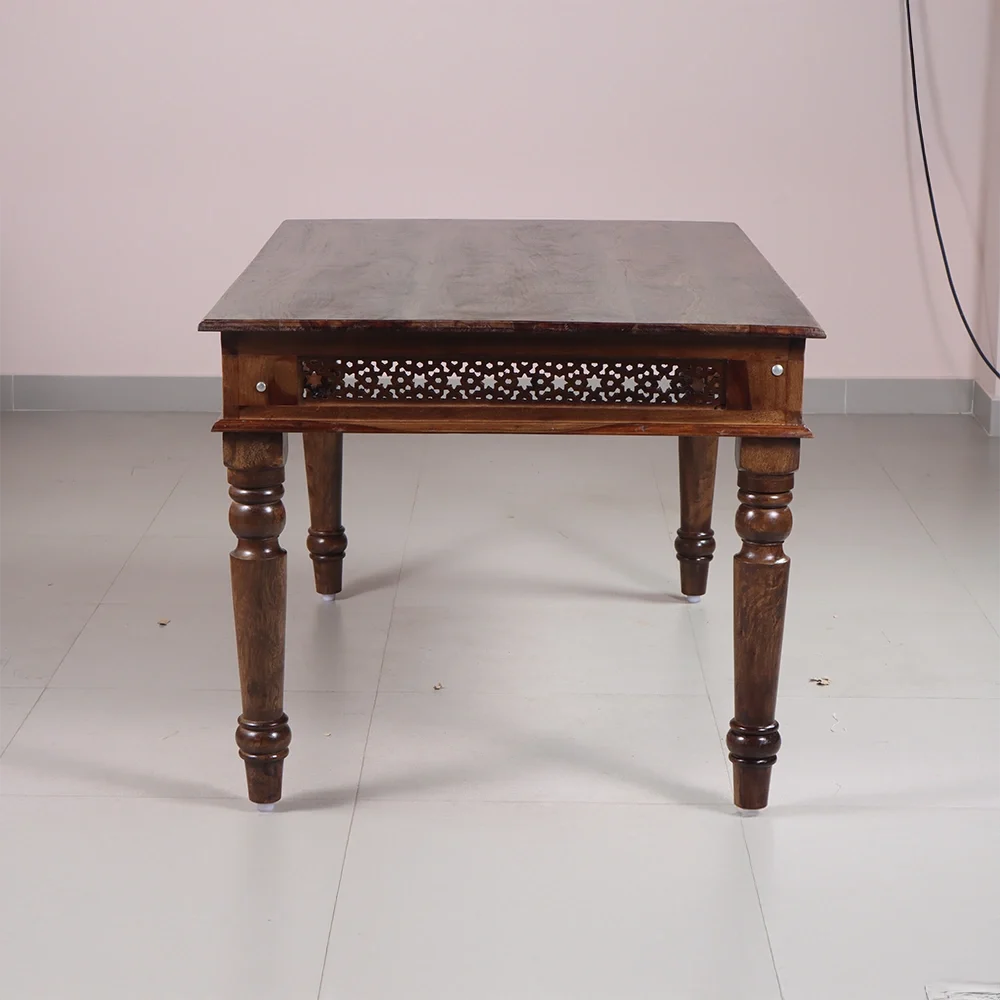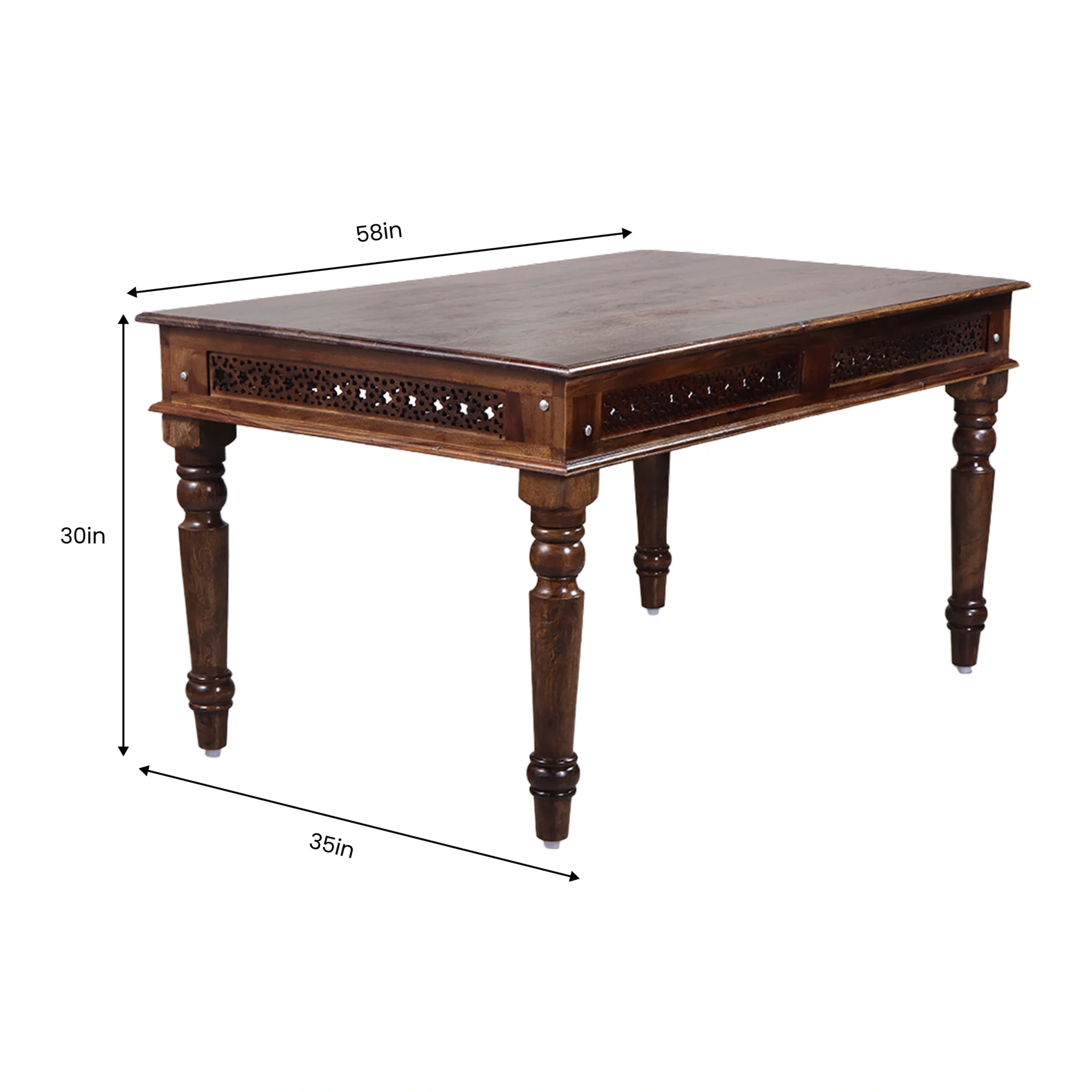 At the heart of this set is premium Sheesham wood, prized for its strength, grain richness, and resilience. Every component—table and chairs alike—is built from solid wood, ensuring exceptional durability and structural stability. The natural grains and earthy walnut tones enhance the visual appeal and emphasize the high-quality craftsmanship.