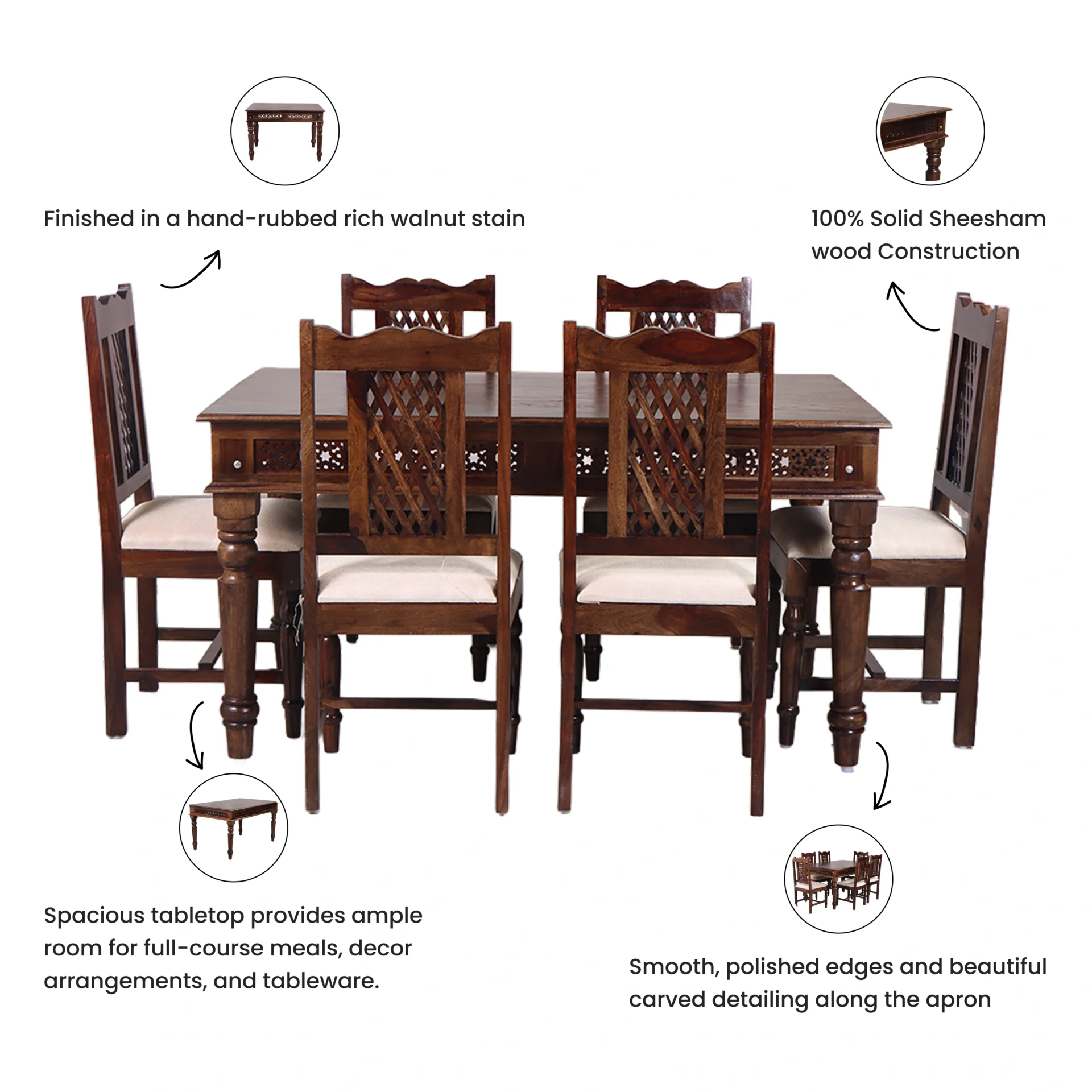 Meadow Table with Elegance Chairs – 6-Seater Dining Set in Solid Sheesham Wood