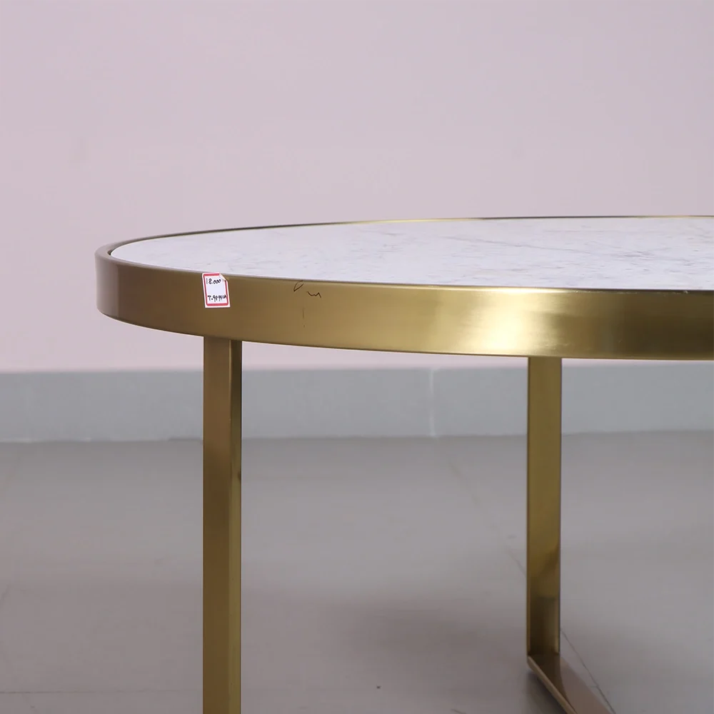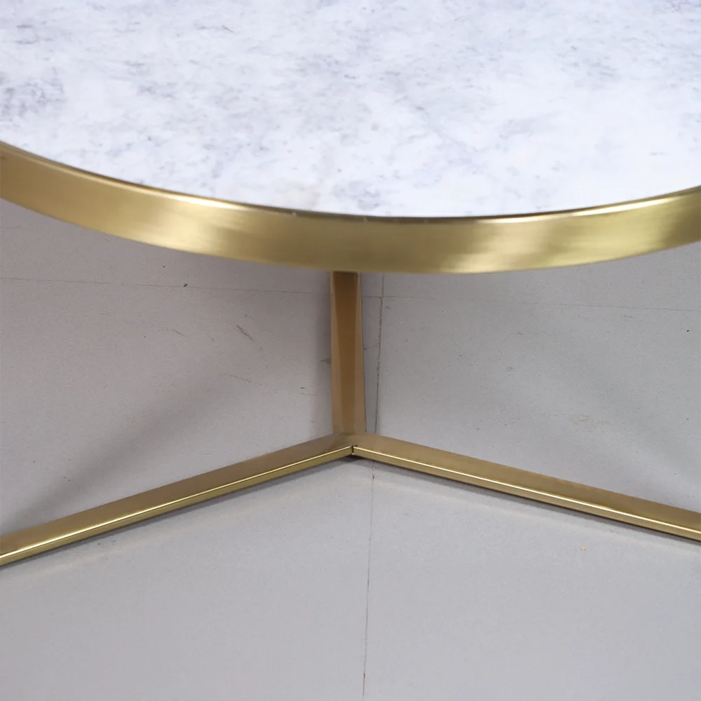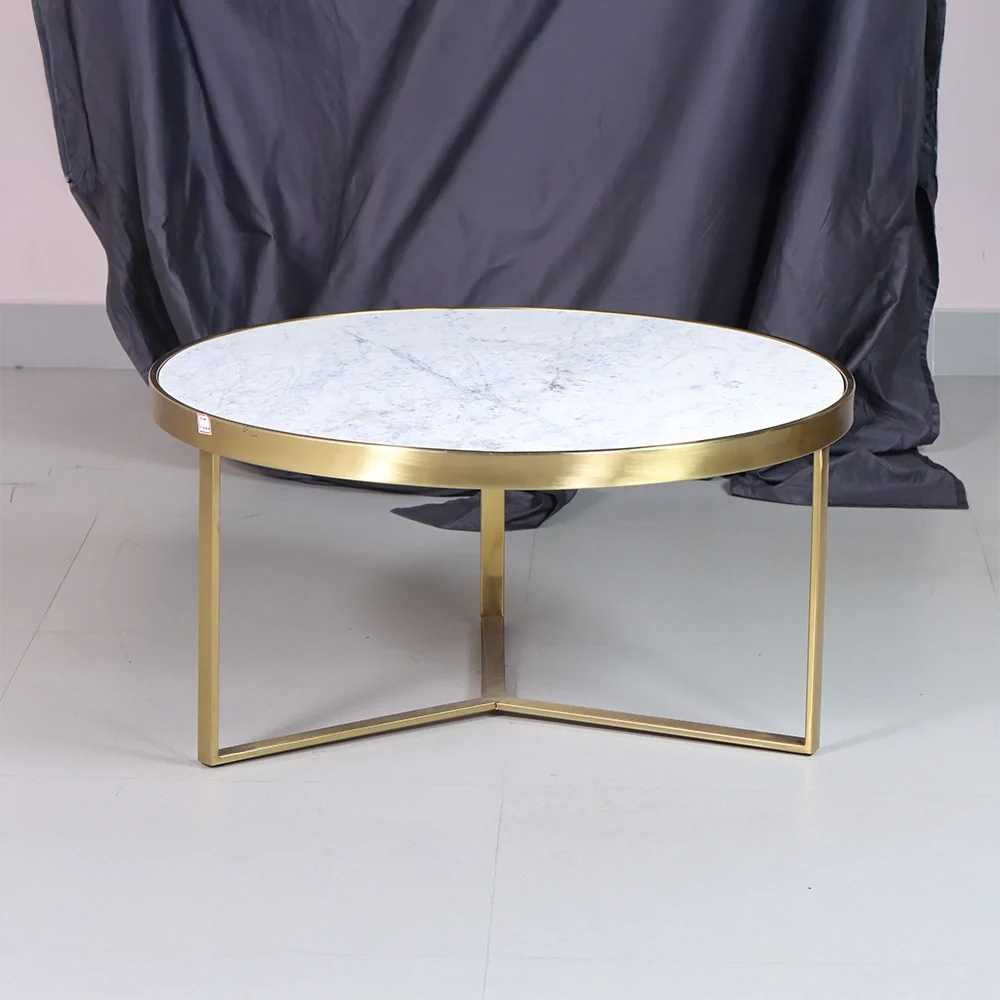 | Product Dimention | diameter : 80 cm Height : 45 cm Frame Material: Brushed stainless steel with gold finish Top Material: Natural white marble |