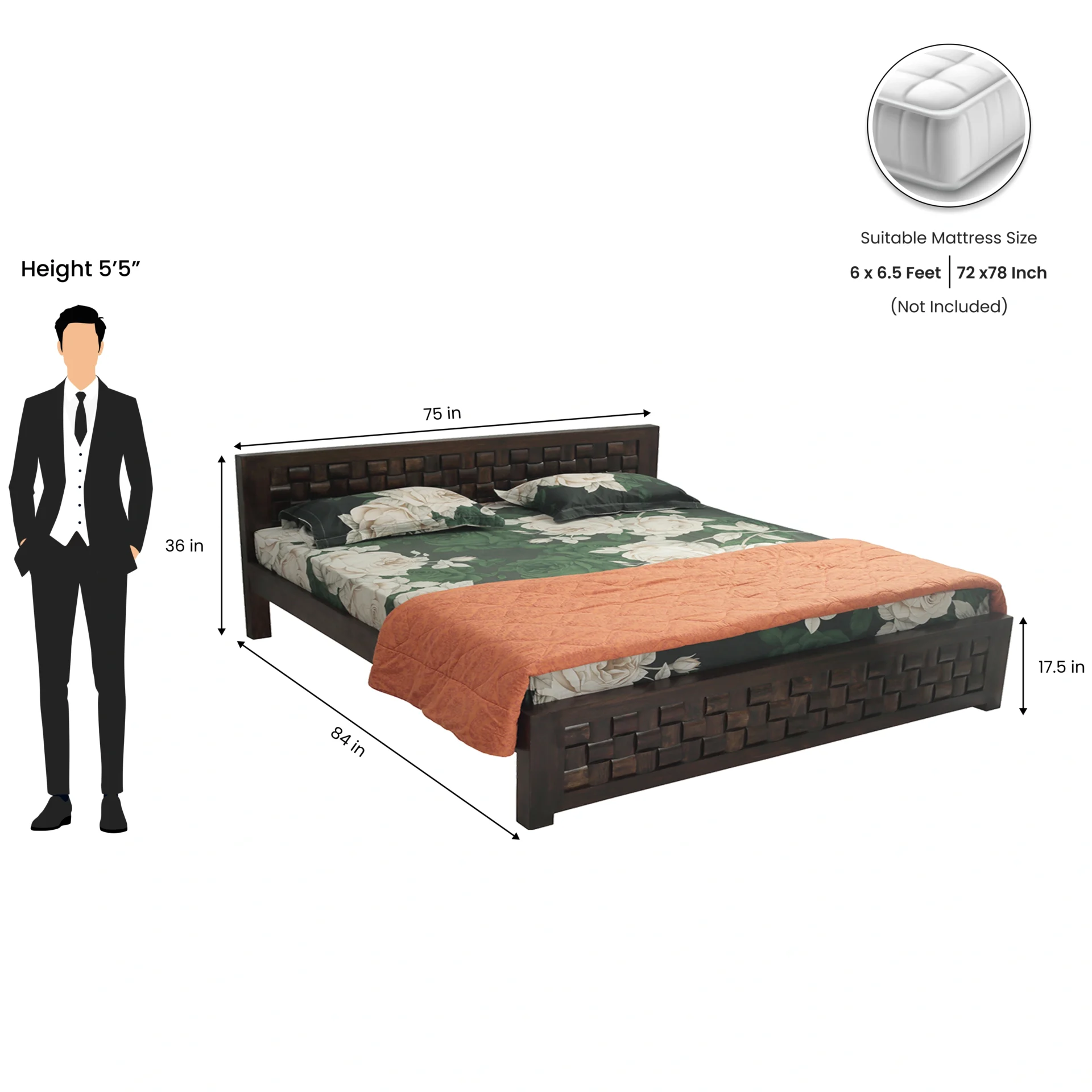 Bring understated elegance to your bedroom with the Nivaar Cot, a King size bed crafted from premium Sheesham wood. Showcasing button-inspired patterns on both the headboard and footboard, this bed blends classic detailing with contemporary design sensibilities.