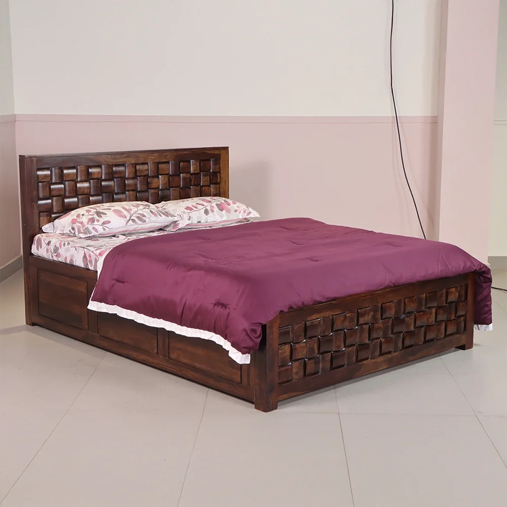 With the Nivaar Cot, add a touch of understated luxury to your bedroom—where graceful detail meets everyday functionality in a solid Sheesham wood form.