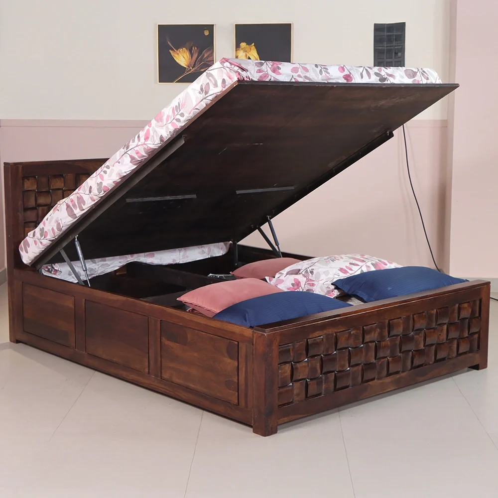| Mattress Support | The mattress is supported by an 18 mm thick plywood base, strengthened with ample wooden framing to ensure durability, stability, and reliable load-bearing performance—especially suited for hydraulic storage functionality. |