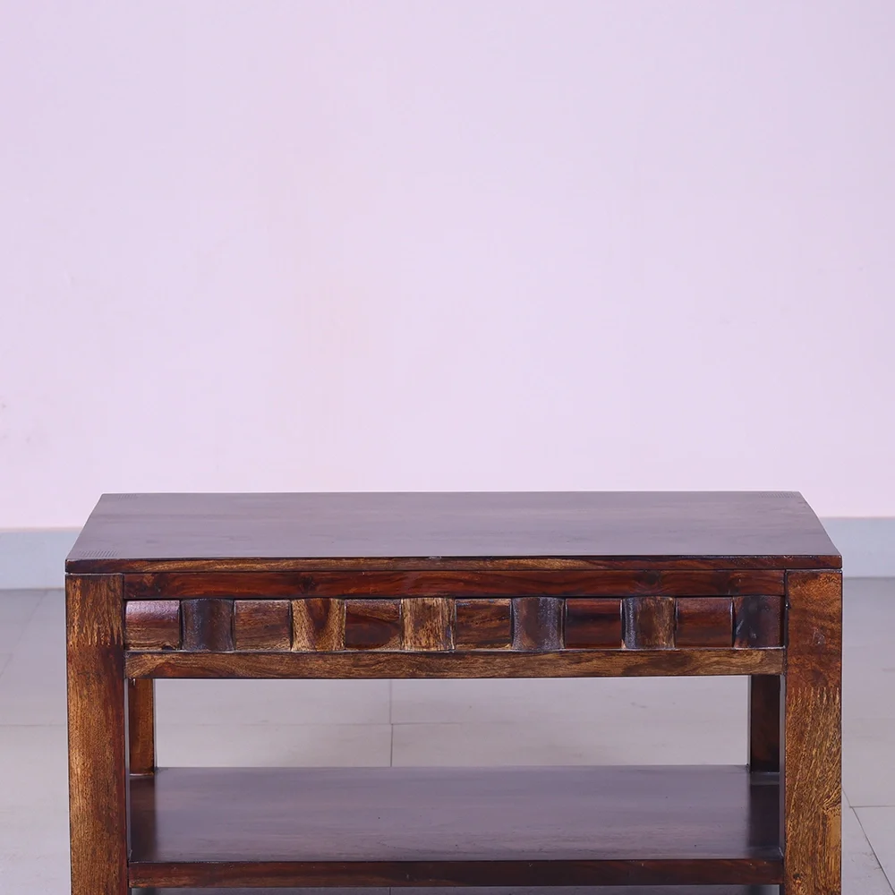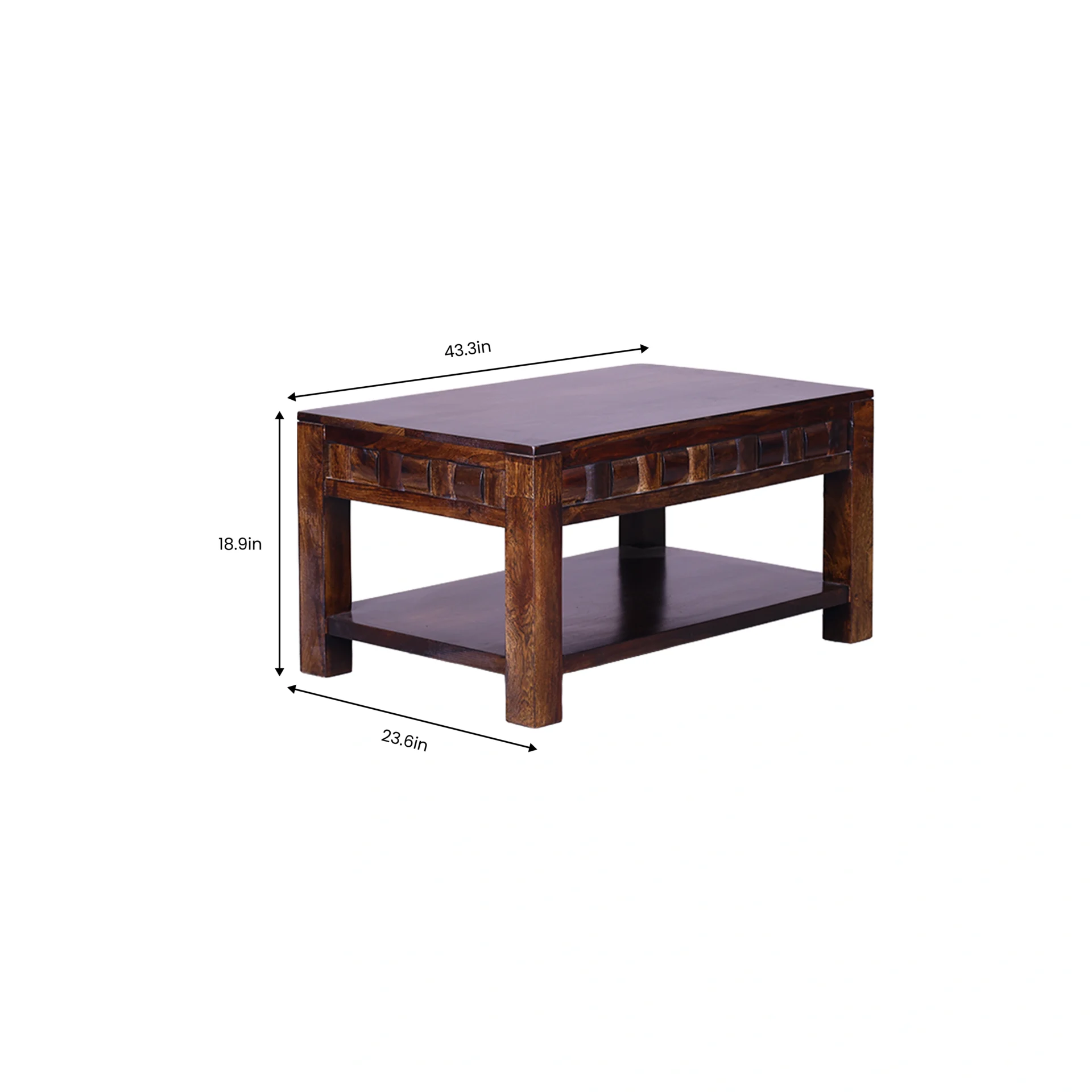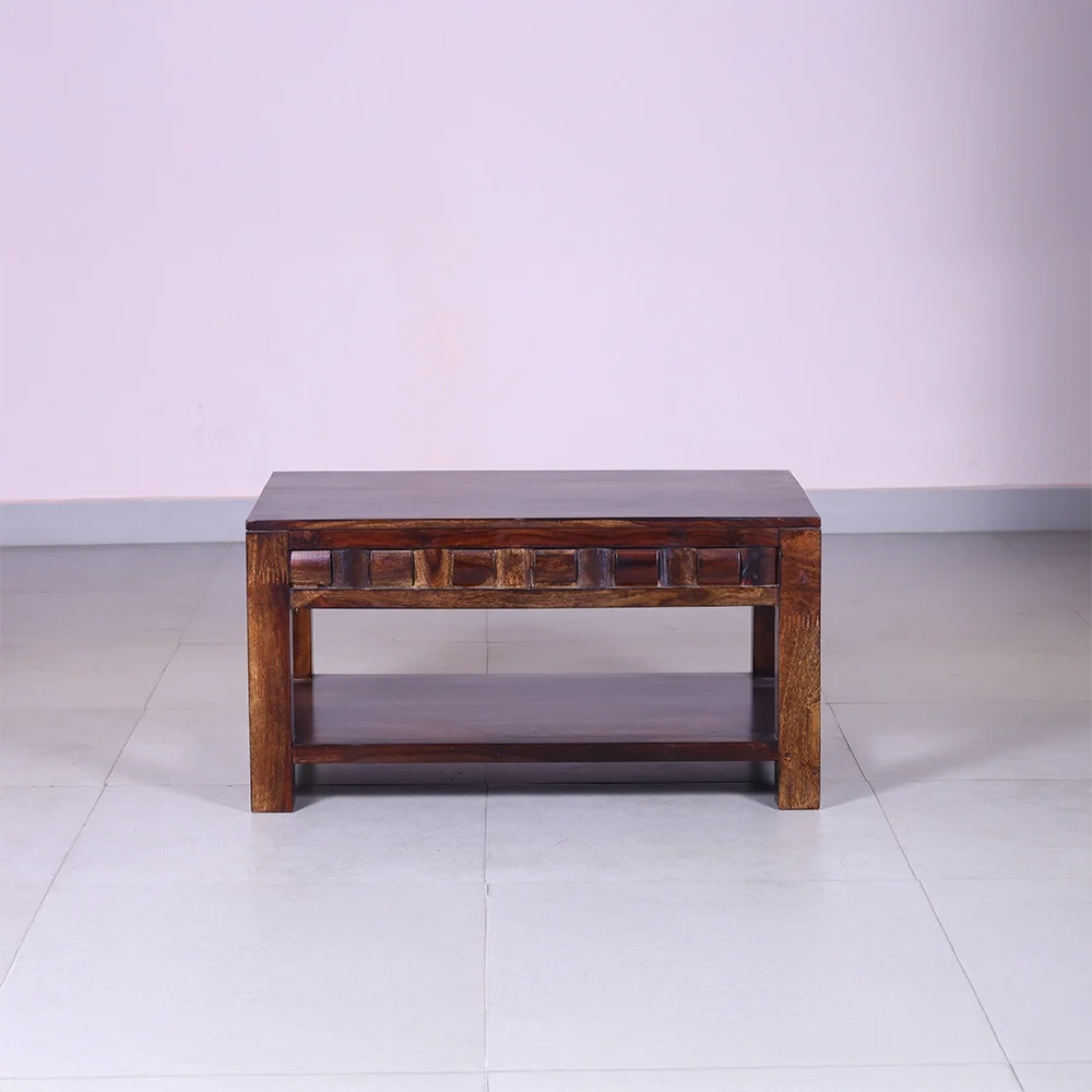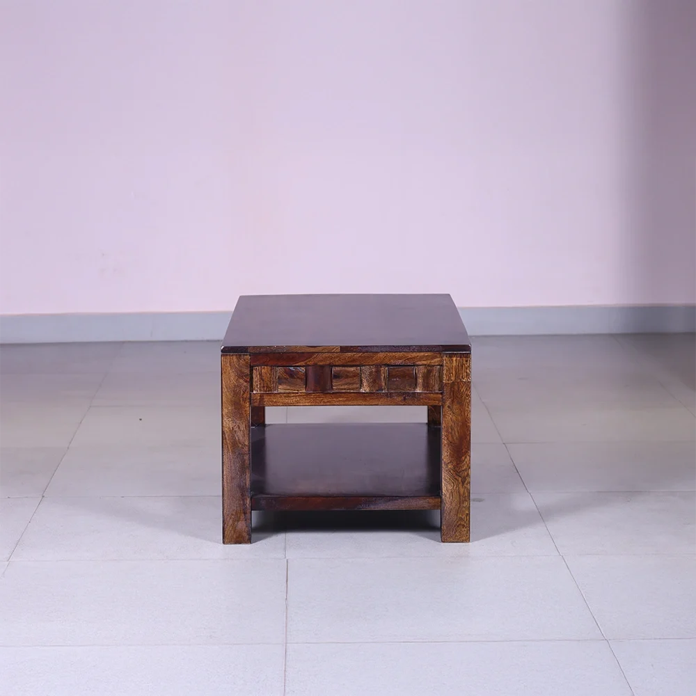 Bring warmth and character to your living space with this beautifully crafted solid wood coffee table. Designed with a sturdy square profile and rich natural grain detailing, this table blends timeless craftsmanship with everyday functionality. The clean tabletop offers ample surface space for décor, beverages, or books, while the lower open shelf adds convenient storage for magazines and essentials. Its strong wooden legs and detailed apron design make it a perfect centerpiece for both modern and traditional living rooms.