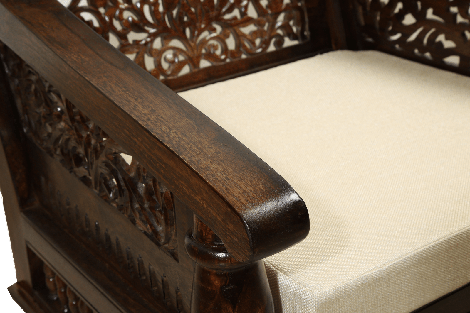 Bring home a piece of heritage with this exquisitely designed Peacock Wooden Sofa Set — where tradition meets comfort in style.
