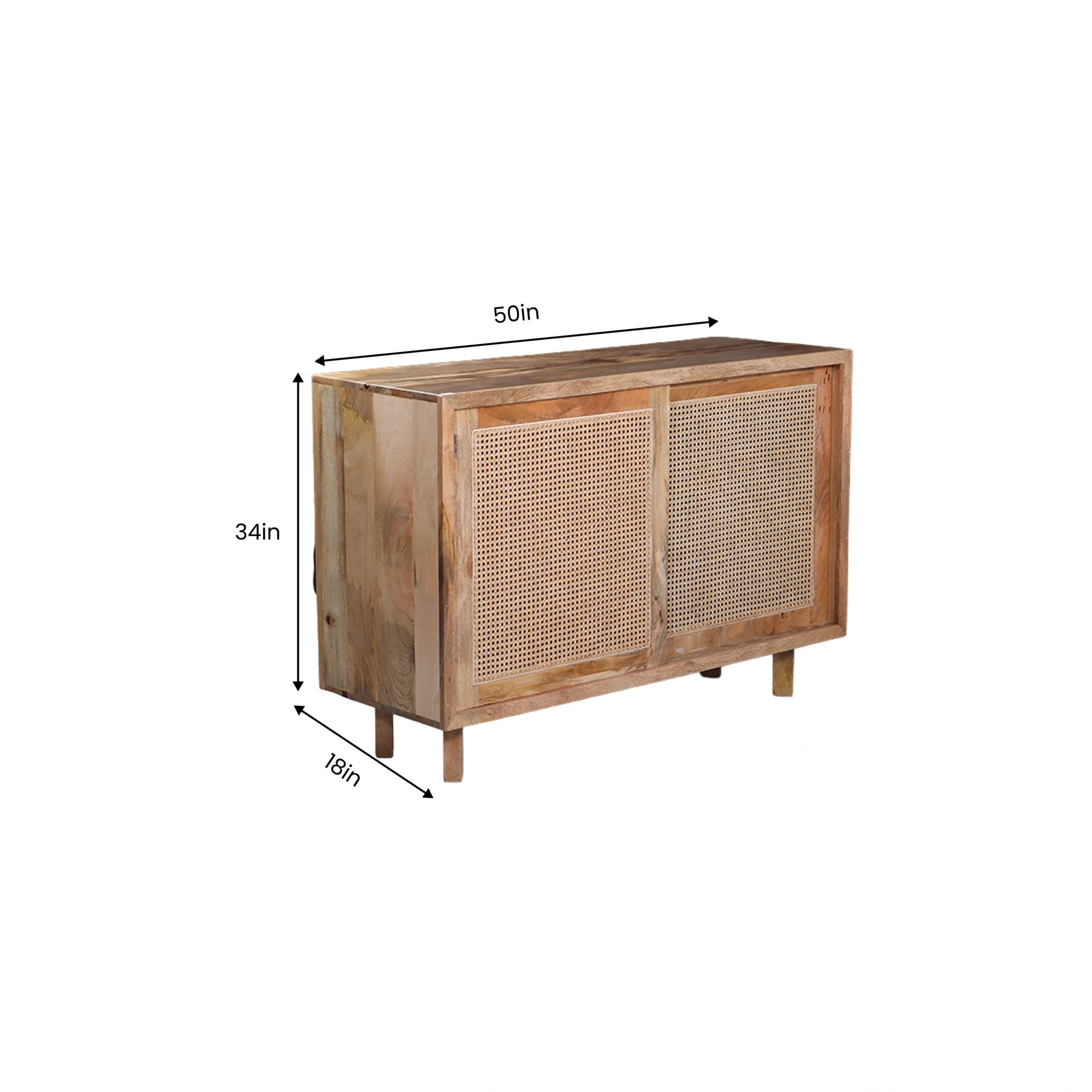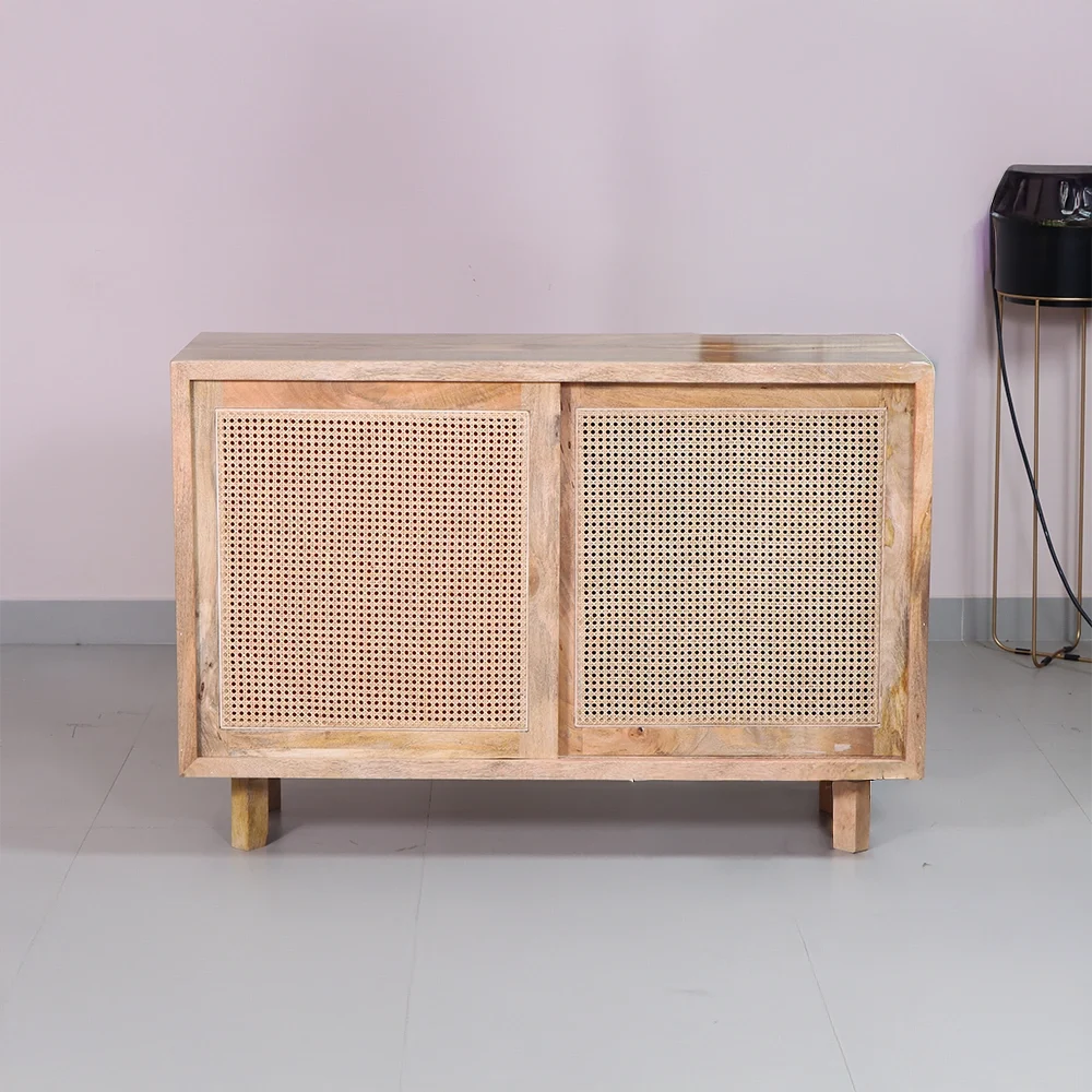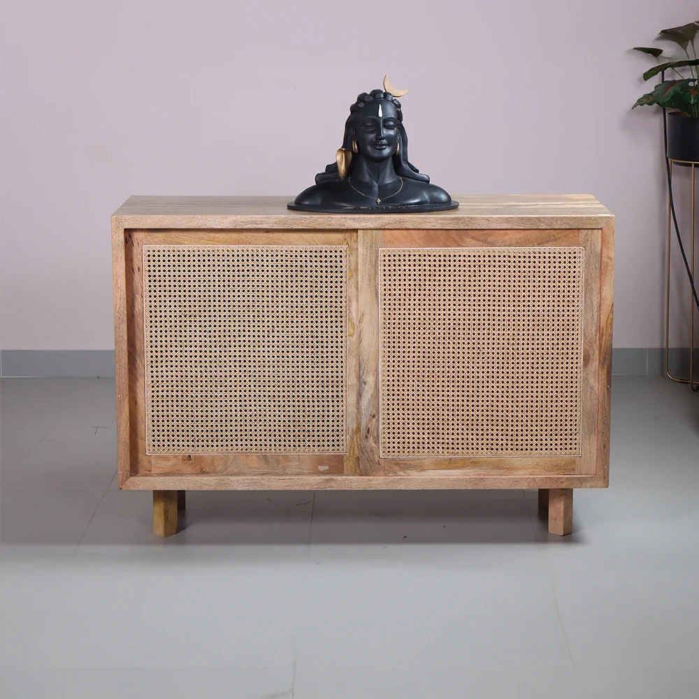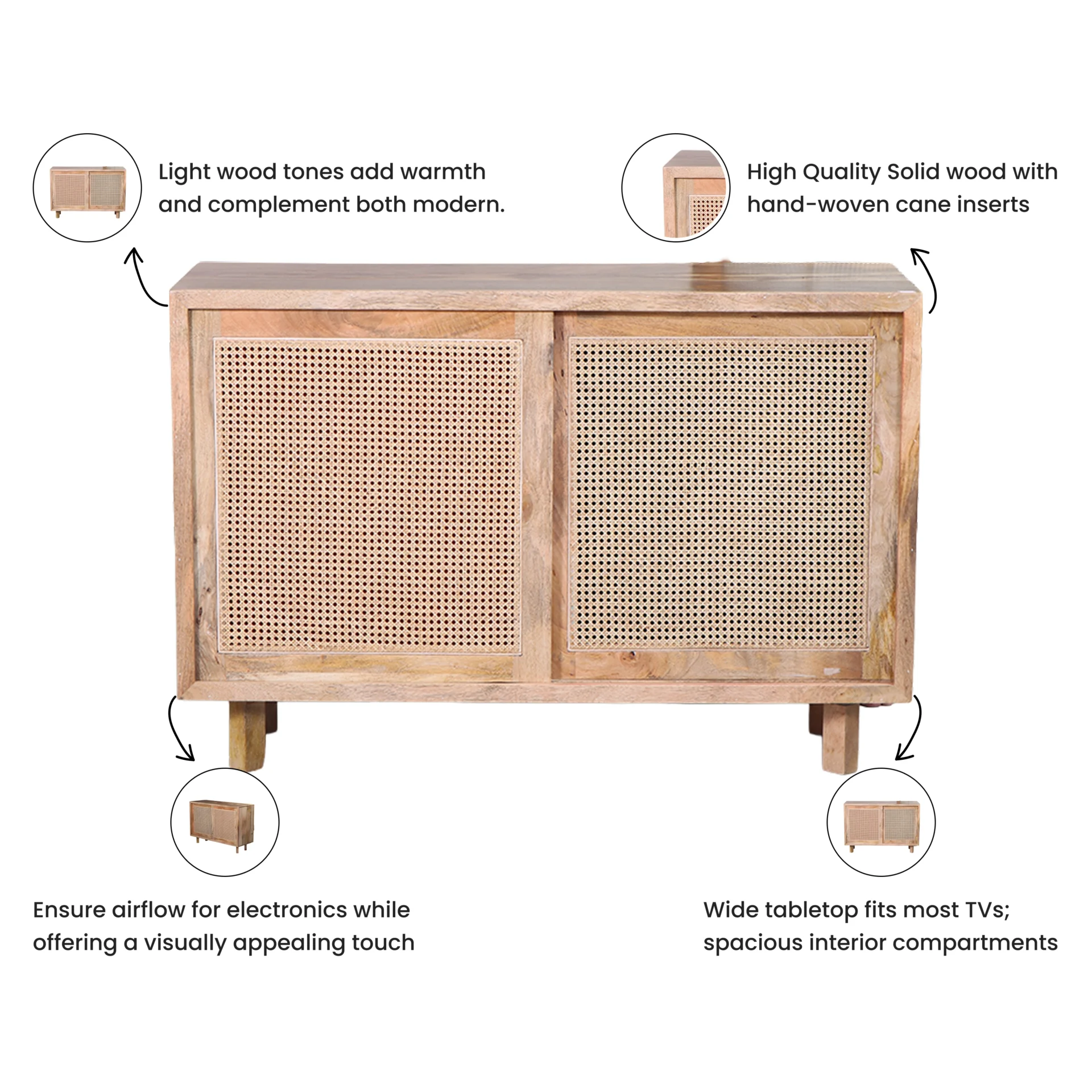 Bring natural elegance and artisanal charm to your living space with the Pearl Cane TV Unit. Crafted from high-quality wood and adorned with finely woven cane panels, this unit beautifully blends traditional craftsmanship with modern minimalism. Its soft honey-toned finish and warm textures make it a standout addition to any room.