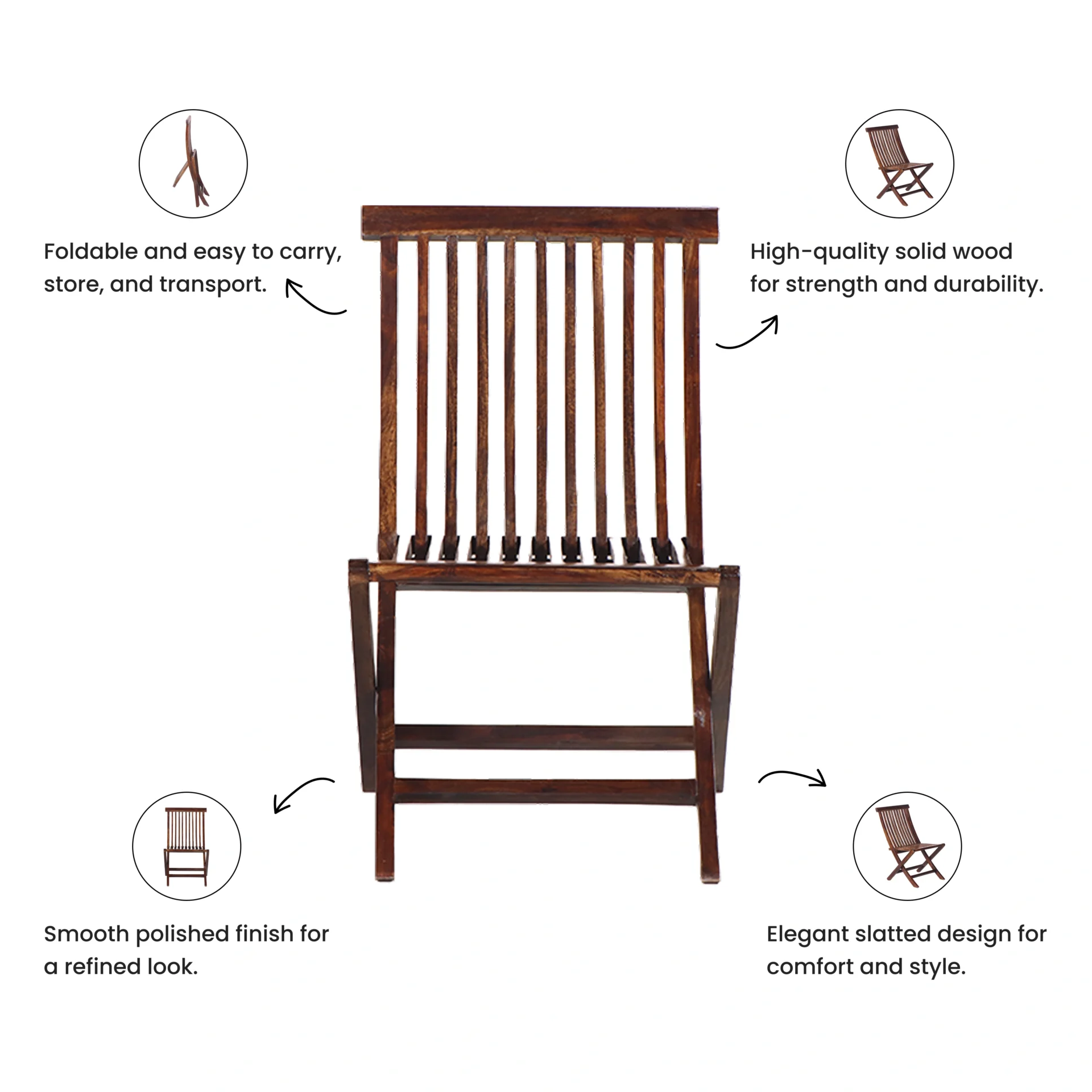 The Penna Folding Chair is a perfect blend of style, comfort, and practicality. Crafted from durable solid wood with a rich polished finish, this chair offers a natural elegance that enhances any indoor or outdoor setting. Its slatted backrest and seat ensure proper ventilation and support, making it ideal for long sitting hours.