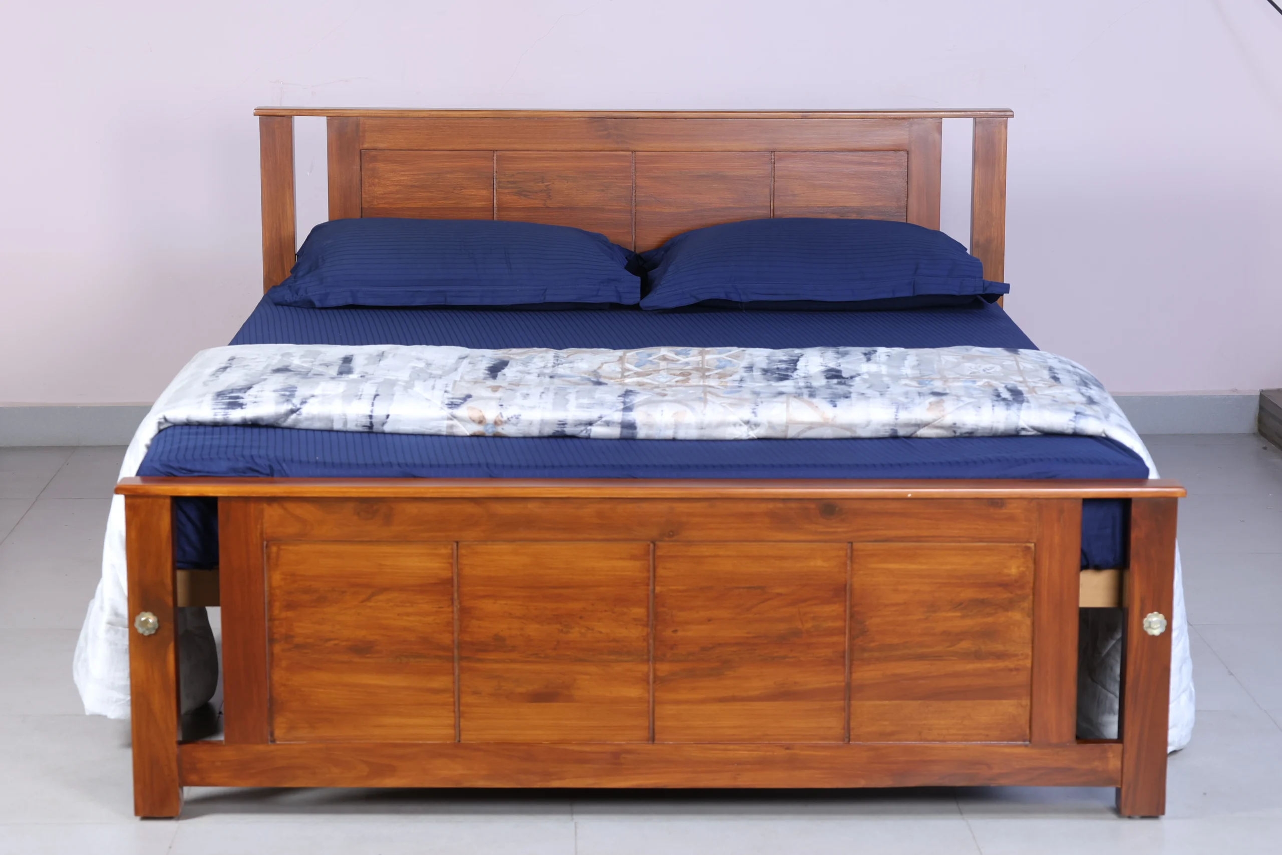 The Plum-Wos Bed is an elegant blend of simplicity and strength. Crafted from premium Sheesham wood, it features a clean, panel-style headboard and footboard that highlight the natural beauty of the grain. With its smooth finish and minimal lines, this bed brings warmth and sophistication to any bedroom. The sturdy frame ensures long-lasting durability, while the solid wood base offers reliable mattress support for restful sleep every night.