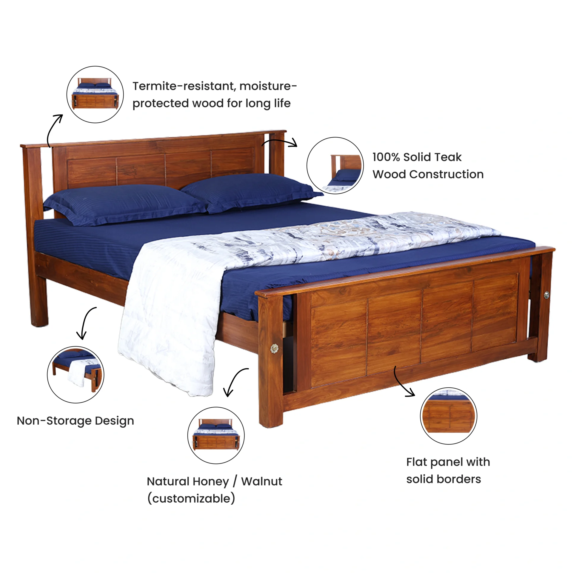 | Mattress Support | The mattress rests on thick, flat Solid wood planks that cover the entire bed frame . These planks are fixed and evenly spaced, creating a strong and stable base . It’s not a mesh or spring system it’s solid wood, which gives maximum durability and weight support. |