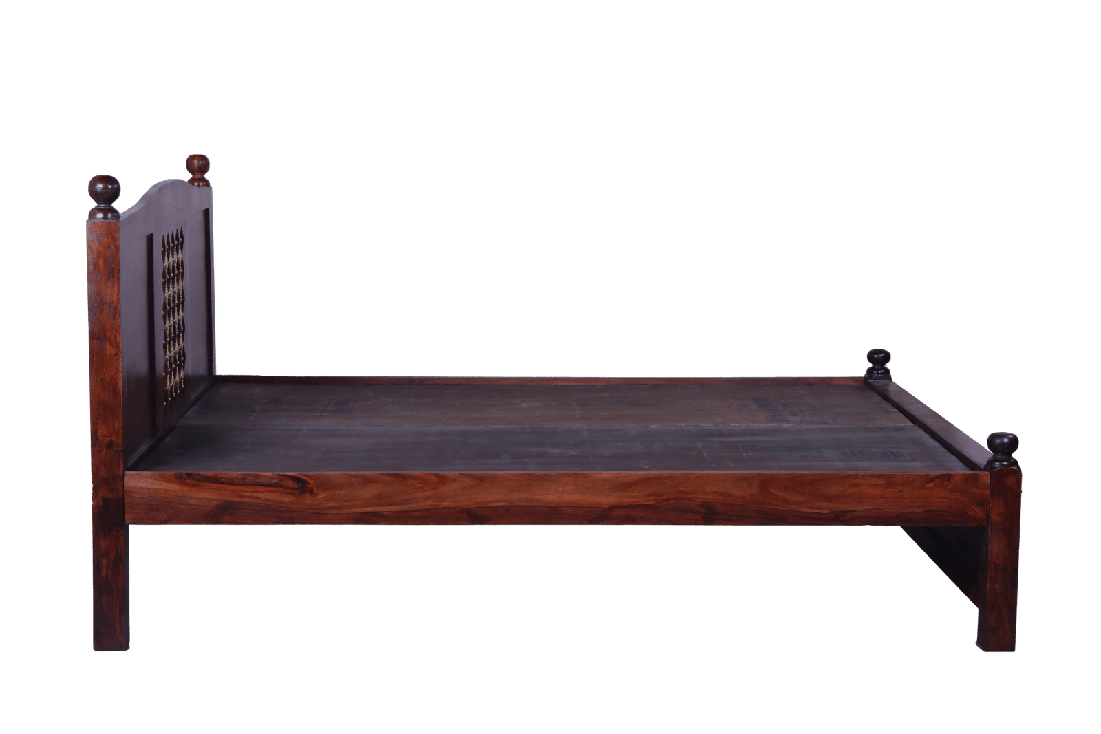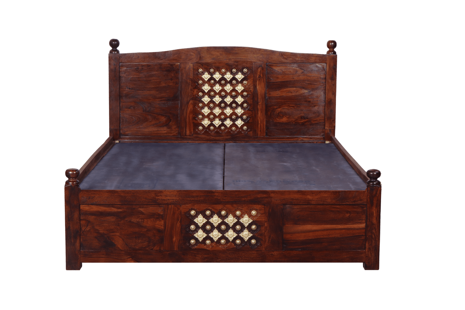 Royal Bakhra Cot: Queen Size Grandeur with Brass Embellishment in Sheesham Wood
