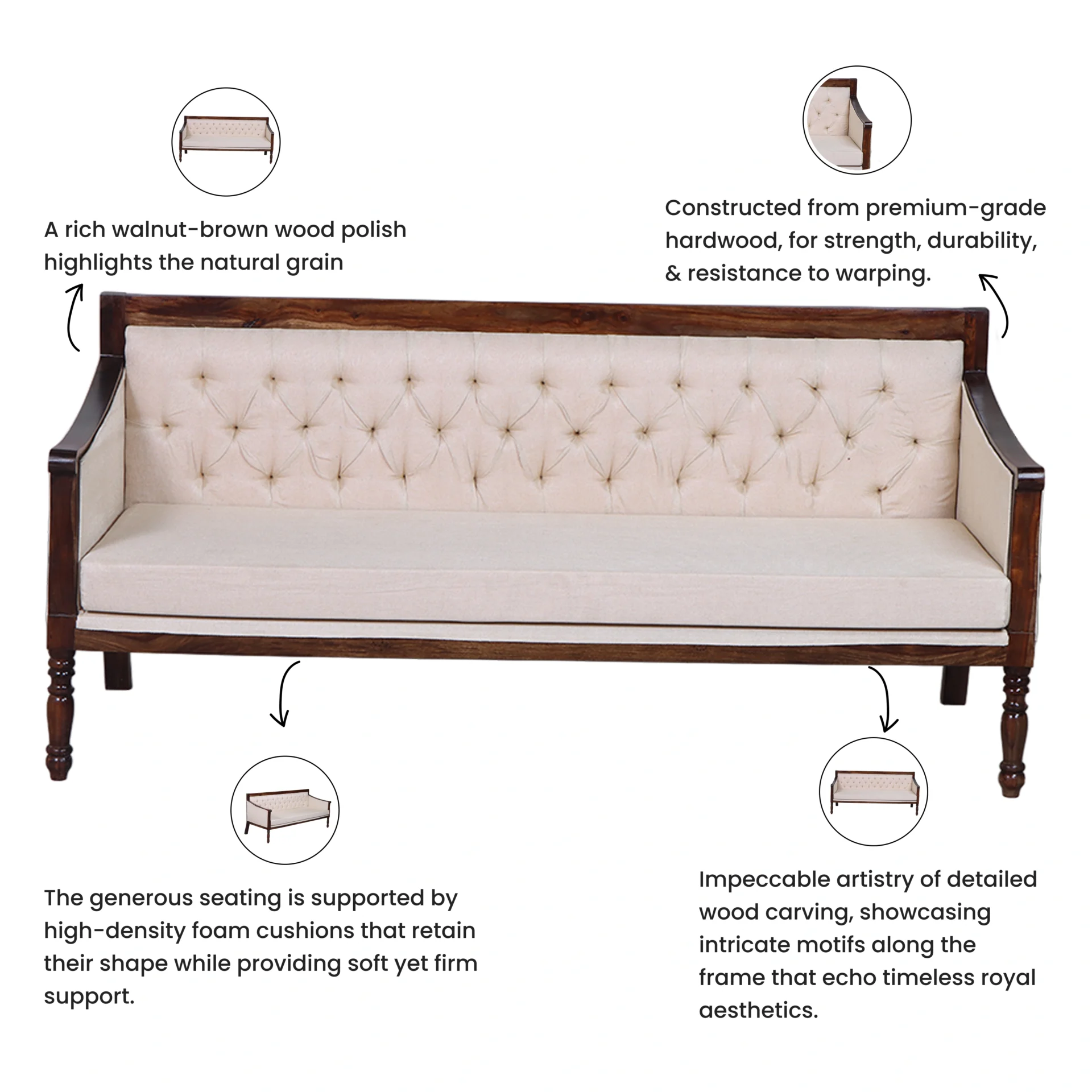 Whether you’re furnishing a drawing room, lounge, or guest area, this royal ensemble brings charm, character, and comfort to any setting.
