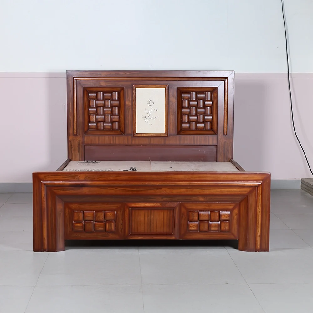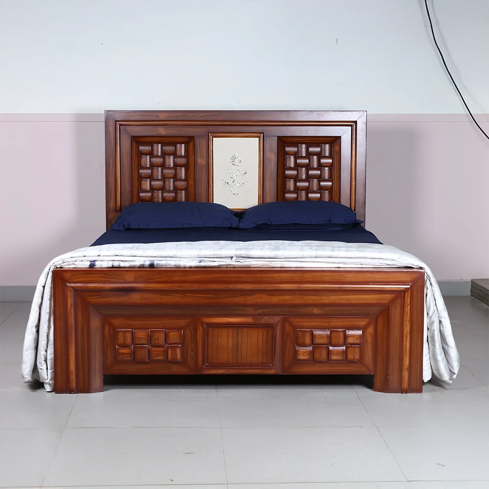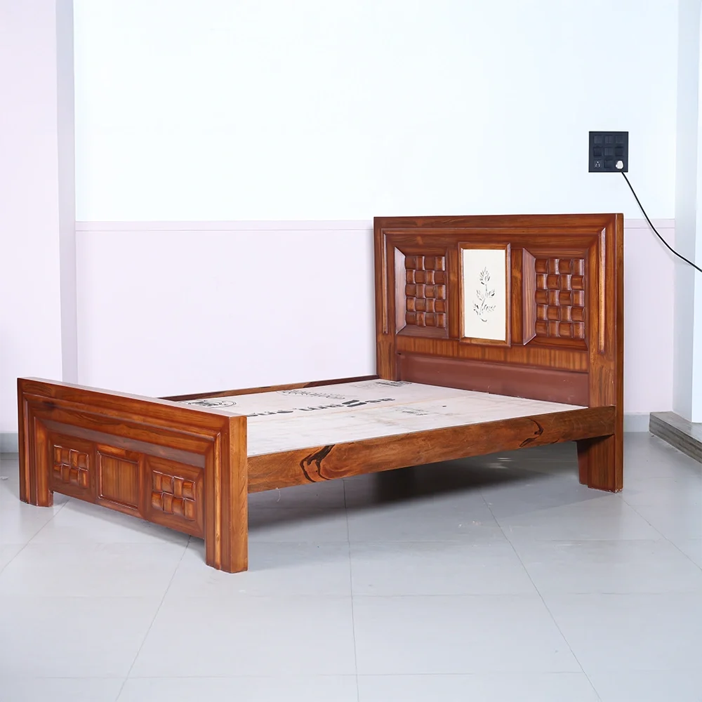 The bold geometric panels on the headboard and footboard are accentuated with deep contours, giving the bed a solid and luxurious presence. The smooth polish enhances the natural wood grains, reflecting fine artistry and lasting durability. Ideal for modern and classic interiors alike, this bed adds warmth, character, and refinement to any bedroom.