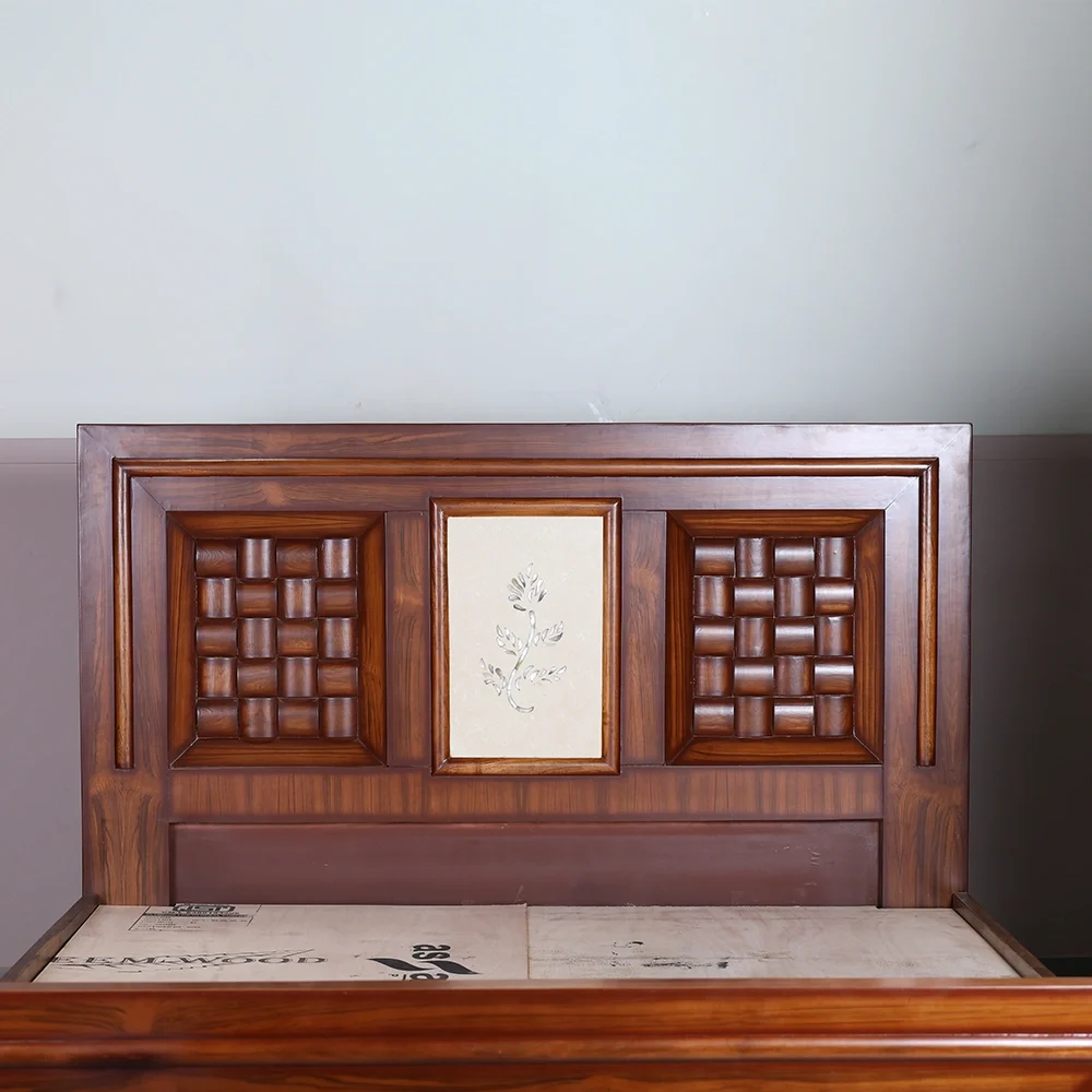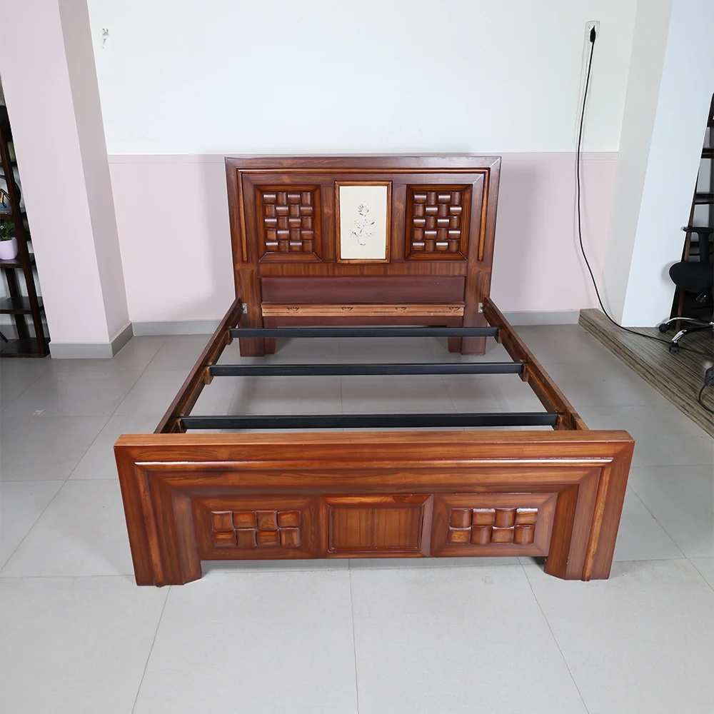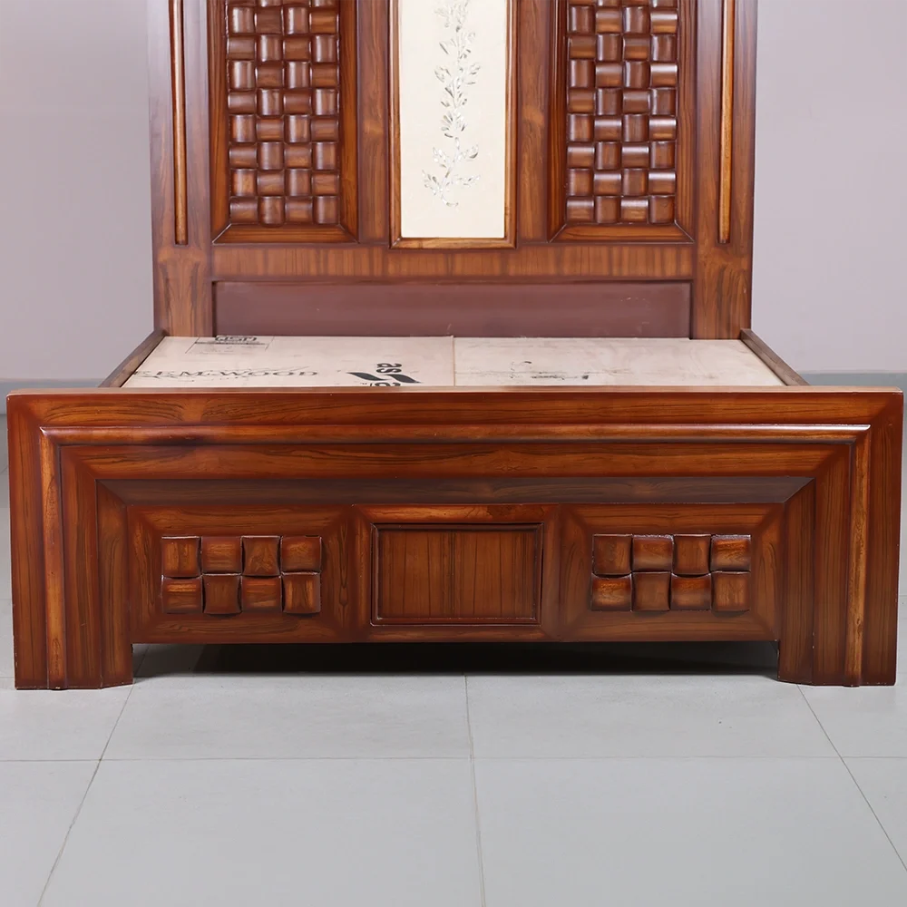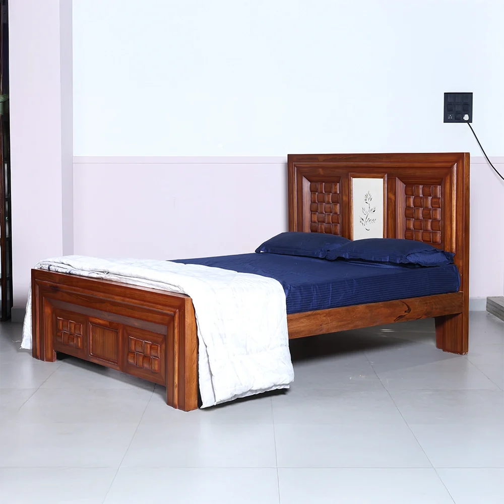 The bold geometric panels on the headboard and footboard are accentuated with deep contours, giving the bed a solid and luxurious presence. The smooth polish enhances the natural wood grains, reflecting fine artistry and lasting durability. Ideal for modern and classic interiors alike, this bed adds warmth, character, and refinement to any bedroom.