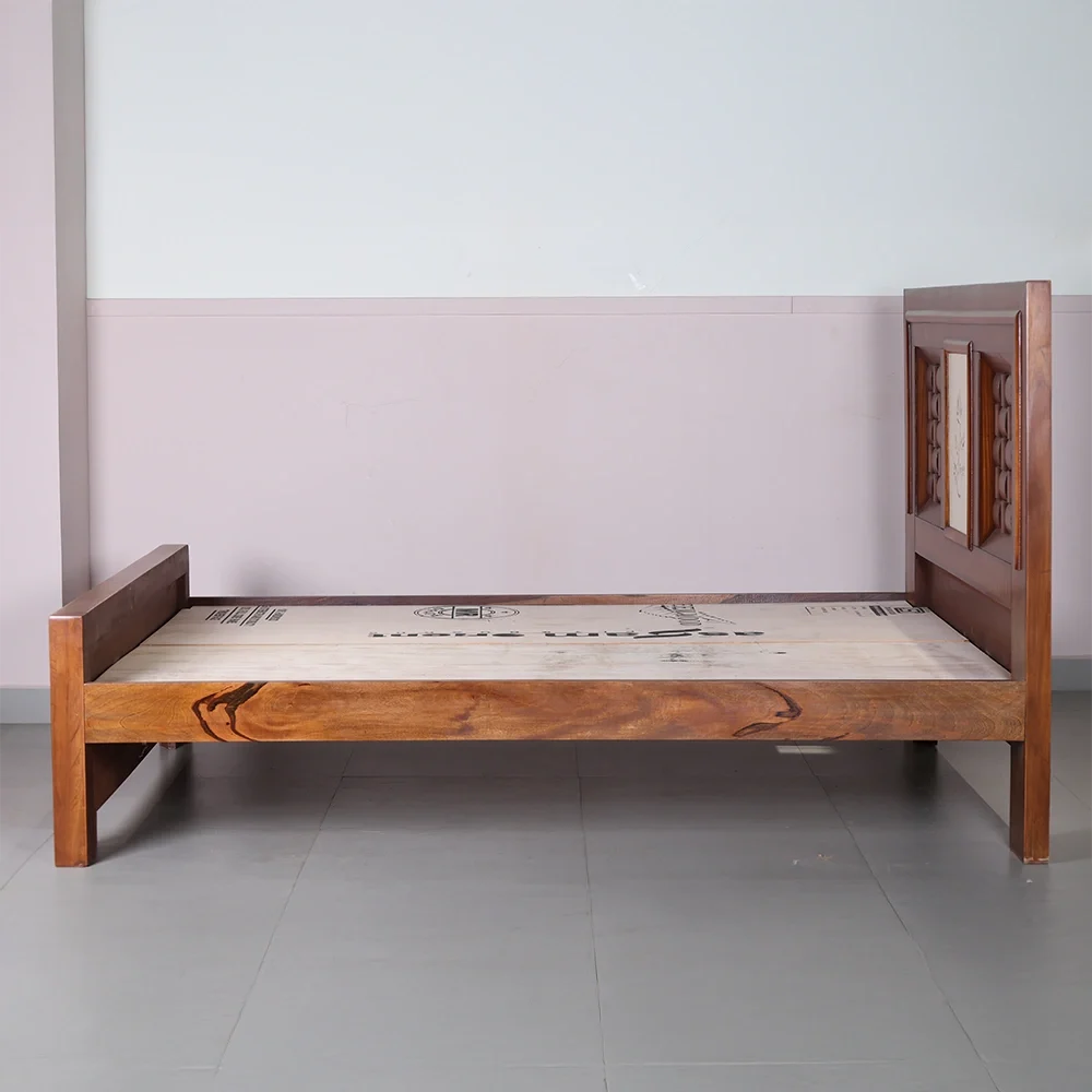 | Mattress Support | The mattress is supported by a 12 mm plywood base, which is further reinforced by three iron rods to enhance the bed's structural strength and load-bearing capacity. |