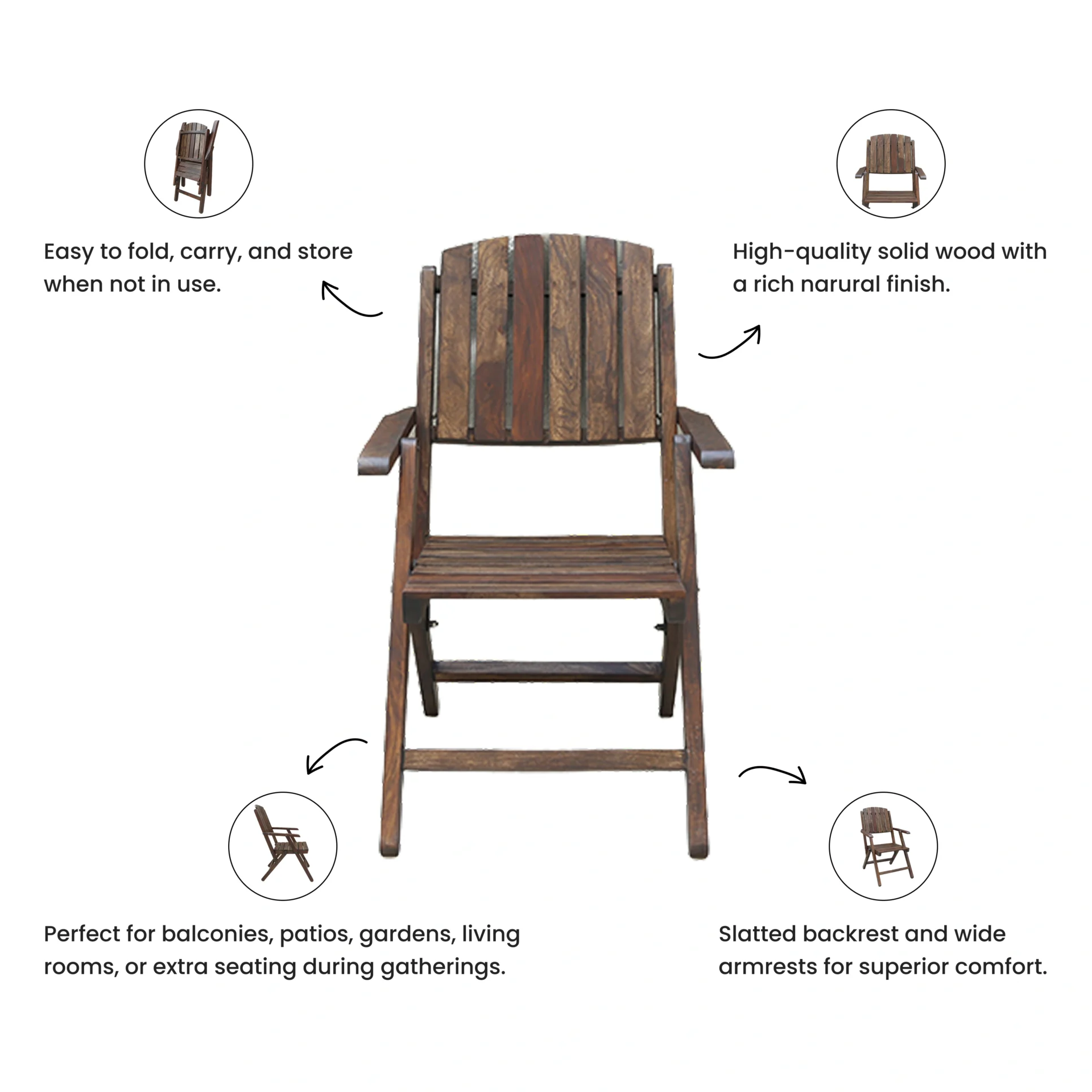 The Serbia Folding Chair is a perfect blend of practicality and elegance, crafted from premium solid wood to bring a natural charm to any space. Designed with a sturdy slatted backrest and wide armrests, it ensures both durability and comfort. Its folding mechanism allows effortless portability and space-saving storage, making it ideal for both indoor and outdoor use.
